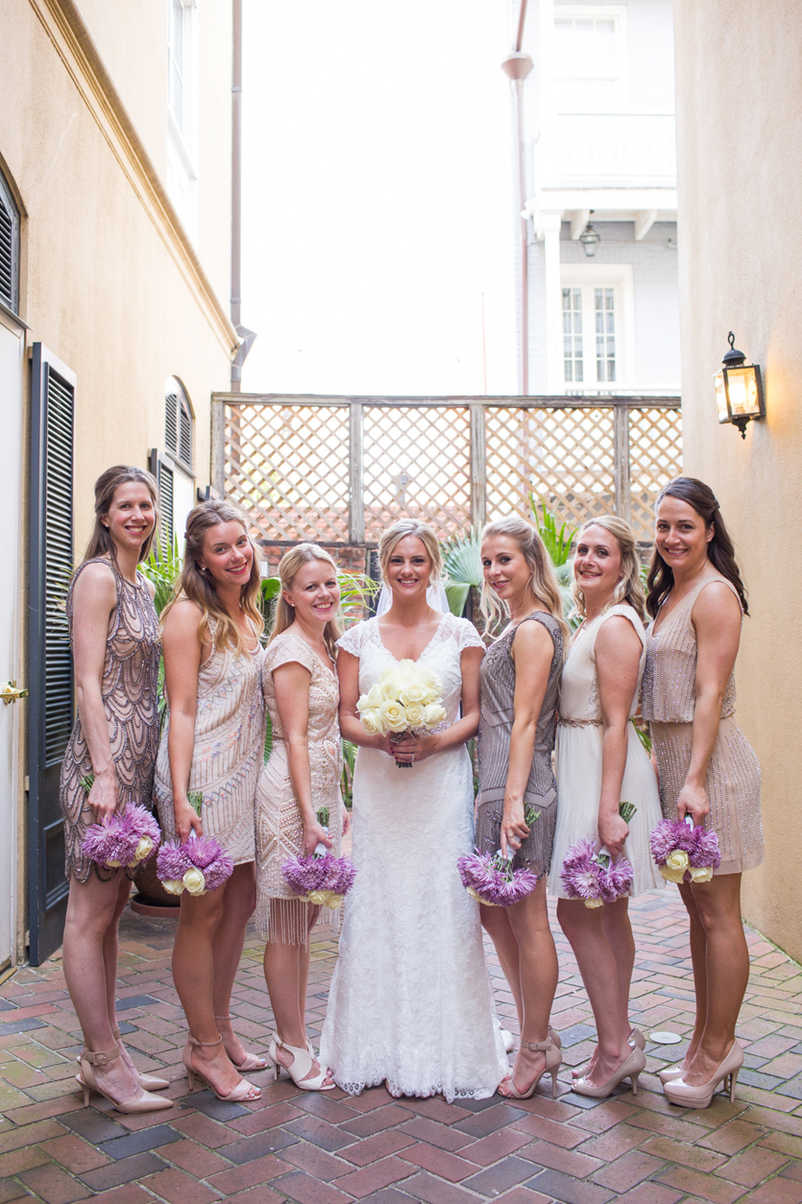 Korie and John are both from Seattle but celebrated their marriage with close family and friends in the French Quarter of NOLA. Having never been to New Orleans before, Char and I were thrilled to see a new city AND capture an incredible celebration for this wonderful couple. The ceremony was in a secluded courtyard of the Chateau LeMoyne Hotel surrounded by beautiful brick and green ivy, and the reception was a short walk to Bourbon Vieux – a private event space above Bourbon Street. What a fun place to throw a party! –Julia Beck