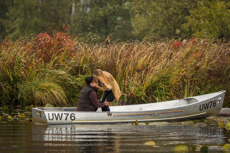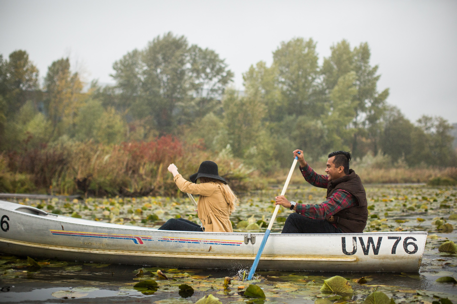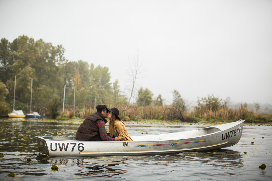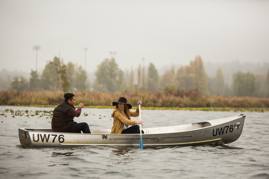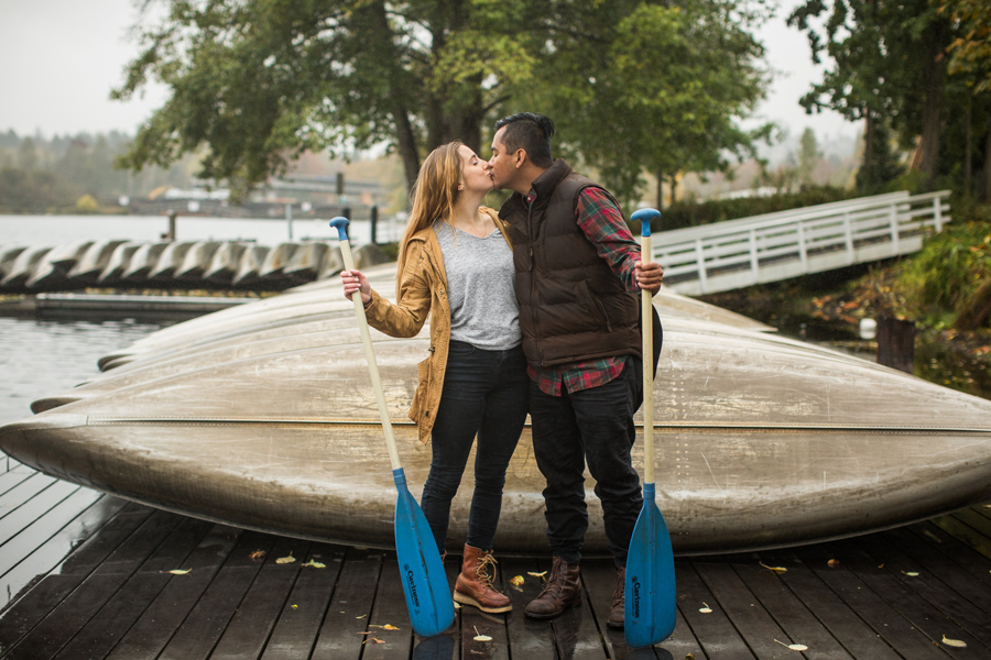 Fall photo shoots in Seattle mean high possibilities of rainy forecasts. I thought we would have to reschedule (for about the third time) due to rain but they were totally up for getting a little wet and wanted the adventure! They had the idea of going out in canoes on Lake Washington, which I didn’t even know you could do. These two were all smiles and clearly in deep. Scroll down for epic canoe pics!