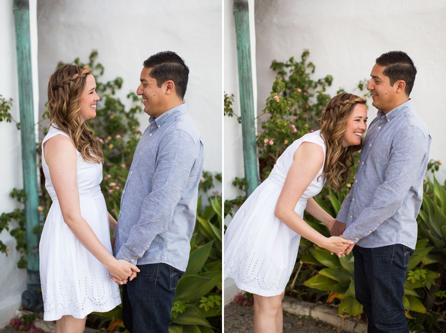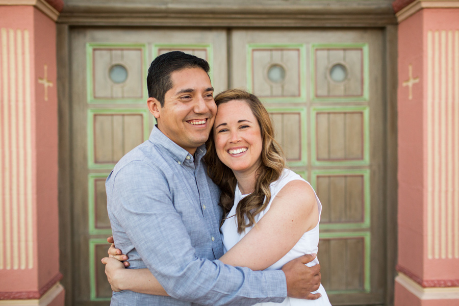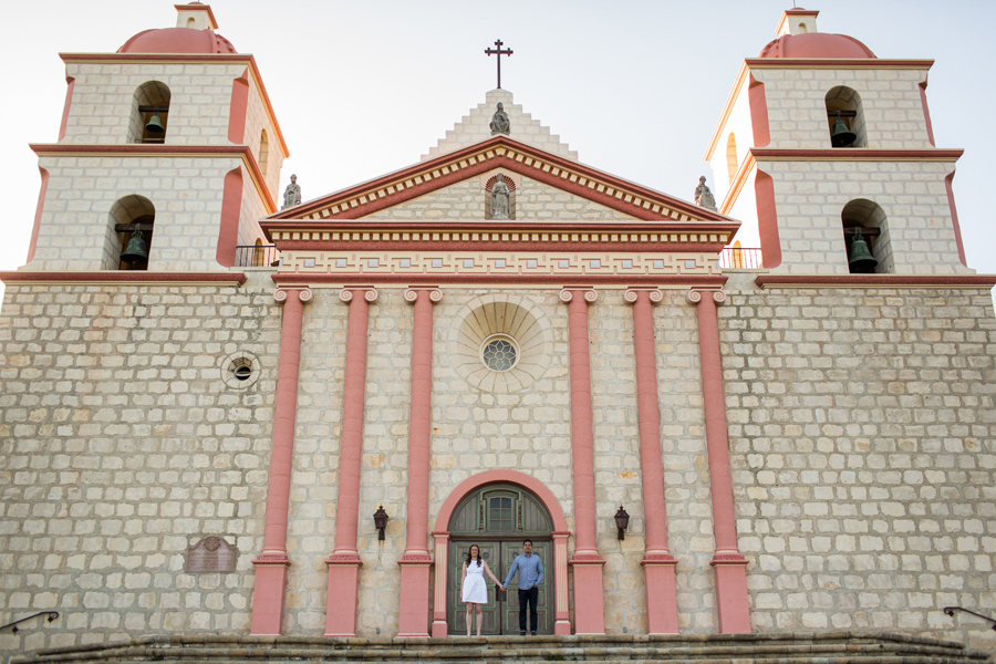 We are so excited for both Eddie and Brenna! Eddie proposed in London over the holidays and the wedding is set for next Spring! Although they claimed to not know what they were doing in front of the camera, they were either 1. lying, or 2. great at faking it 😉 Clearly these two know how to make each other smile. We creatively stalked them as they hung out in front of the Santa Barbara Mission and took a sunset stroll on Butterfly Beach. So fun! 🙂 –Julia Joy Beck
