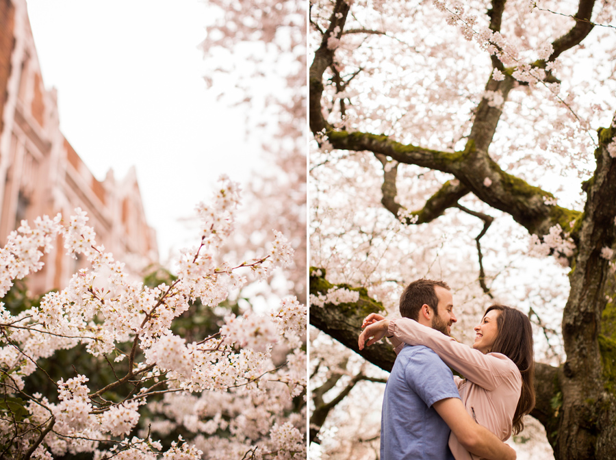 Even though the weather was iffy, we toughed it out and had an amazing Gas Works Park Engagement session with these two! Eric and Jordan have known each other since High School and it’s safe to say it shows in the photos. Okay, how many times will I say this, Seattle weather forecasters are the worst! It was “supposed to rain” during the entire photo-shoot, and then we show up, and it’s nice and sunny with a touch of clouds. Towards the end of our time together, the clouds rolled in and it was just overcast (beautiful) for awhile.. Ugh.. I swear, Weather-people in the Pacific NorthWest love messing with my emotions (and other photographers and brides all around the PNW). Had a great time over at the University of Washington, classic Quad Cherry Blossoms (was like Disneyland, most people I have EVER seen there). Then we cruised over to grab the epic Seattle view from Gas Works Park, A MUST for anyone who hasn’t been! Gotta love the Kenmore Air plane fly-by, thanks Eric/Jordan for the epic pics! 🙂