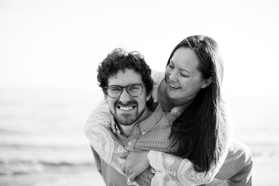 Kelley and Sam have known each other for 11 years, they met in college and have been stuck together ever since. (Click here to see their wedding photos!) For their engagement photos, we decided to take a walk down Henry’s Beach with their super cute dog Penny, are you kidding? Look at them; so dang adorable–what a happy family! Scroll down and enjoy their Henry’s Beach Engagement Photos!
