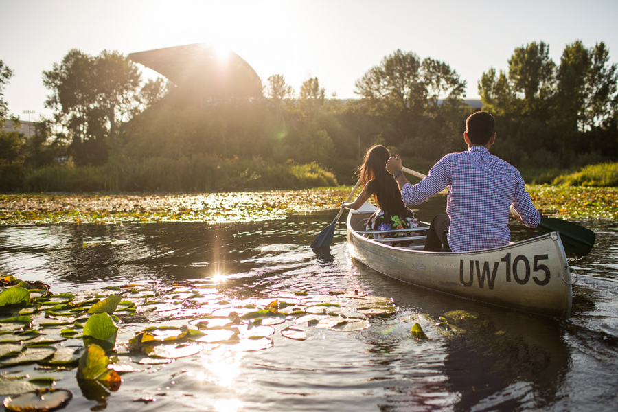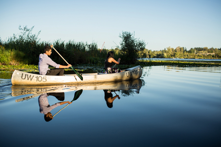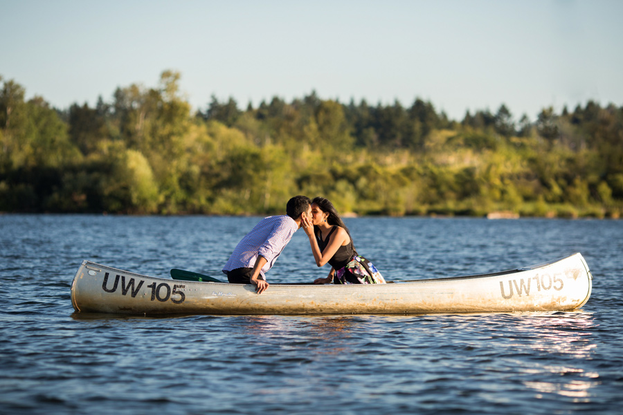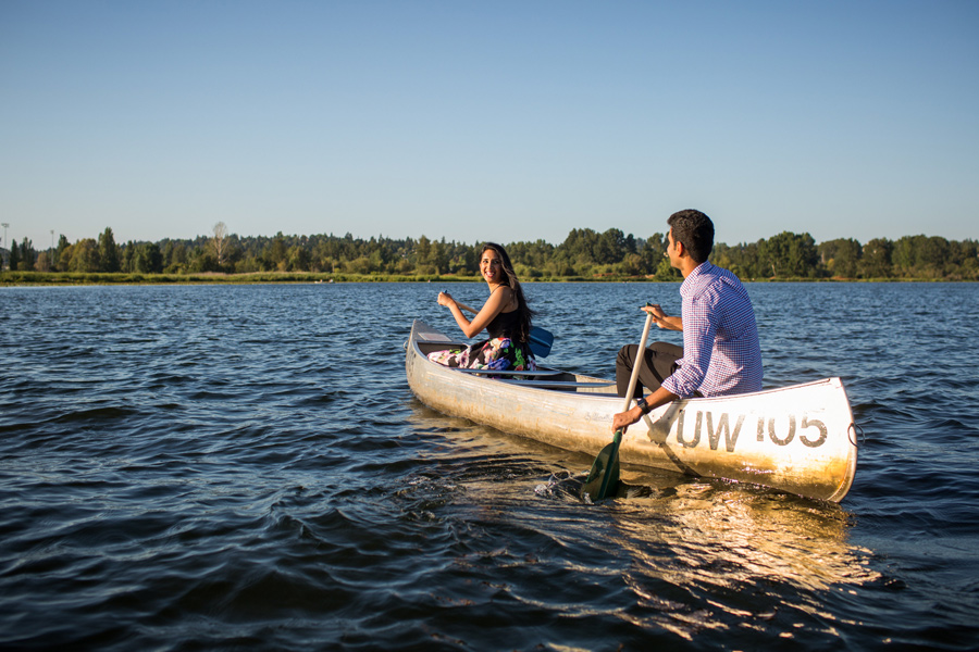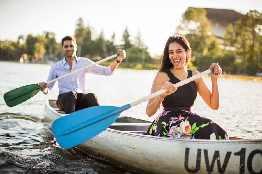 This shoot was inspired by a recent engagement shoot with (Berty and Emily Mandagie) on Lake Washington. Sandeep said Navya would FLIP if we were able to get some Canoe pics, so we said, what the heck, let’s do it! After rowing around Lake Washington, we caught the sunset over at Discovery Park, what a flipping gorgeous place. Way to work it Sandeep and Navya! 🙂