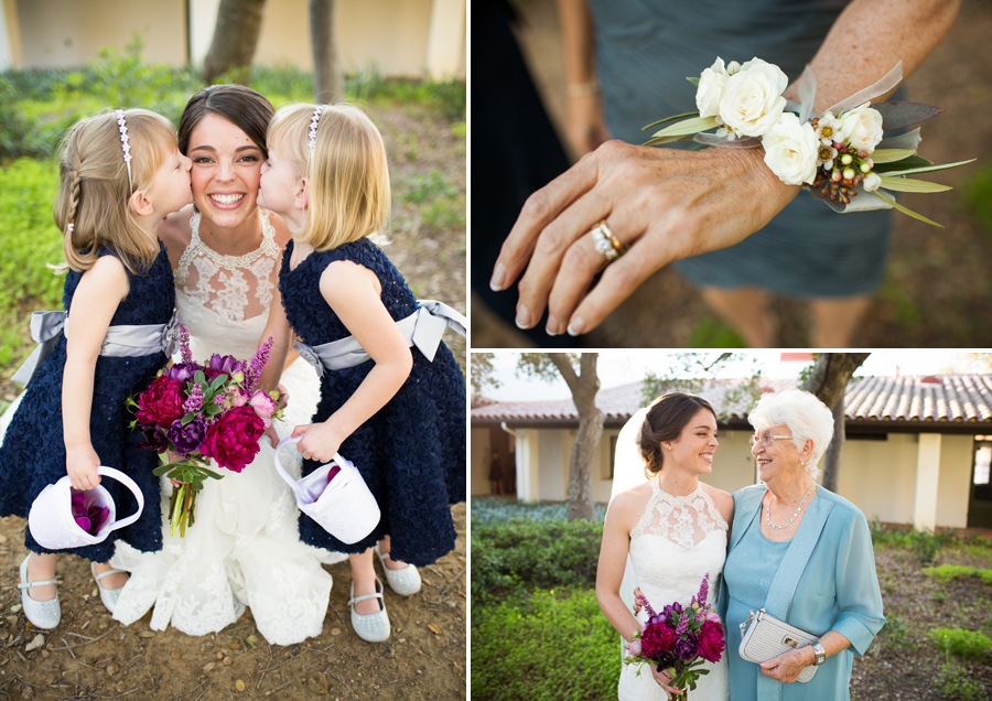 Their wedding day was a typical picturesque day in Santa Barbara–70 degrees, blue skies, and a sunset that leaves you wondering why you don’t live there. The Best. The couple had their “first look” each on Westmont College’s campus where we took bridal party and family photos as well. The ceremony was at Montecito Covenant Church just down the street from Westmont, and coincidentally the church that Char grew up attending! Following the ceremony, we took more photos of just the bride and groom at Butterfly Beach as the sun was setting. Side note, the whole wedding day was planned and organized by the wonderful Dalina Michaels (Once In a Lifetime Wedding Planning) and it all went off without a hitch! Reception was in the Cabrillo Arts Center near downtown SB and right on the beach. The theme of their dinner menu was “happy hour” so the dinner was made up of a variety of small plate/appetizer-type dishes i.e. pork sliders, stuffed potato halves, cheese and crackers, etc (by Stanton’s Catering). Each table center had wooden carriers made by a family friend and filled with old glass bottled soda pop for guests to toast with. Super cute and original. Dessert was cupcakes provided by Beyond Frosting (Julianne Bayer) and they were, in Char’s words, life changing. DJ Flamezz was in charge of spinning beats and keeping the dance floor hopping. The day was effortlessly beautiful in so many ways, and we had a blast hanging with such a fun-loving couple, family, and friends!