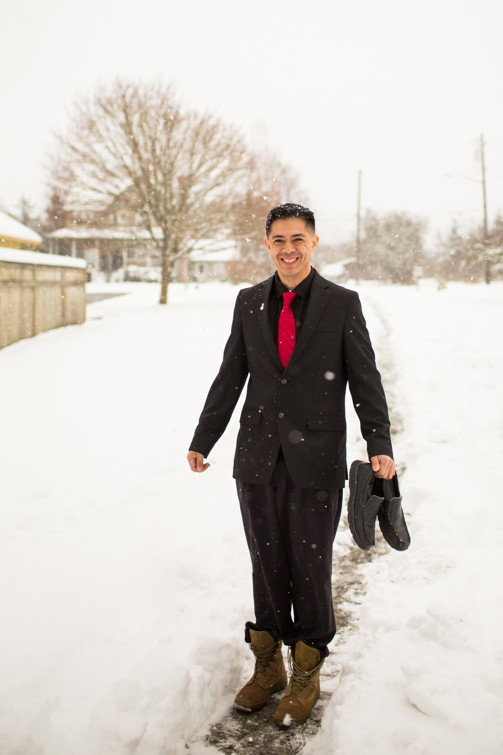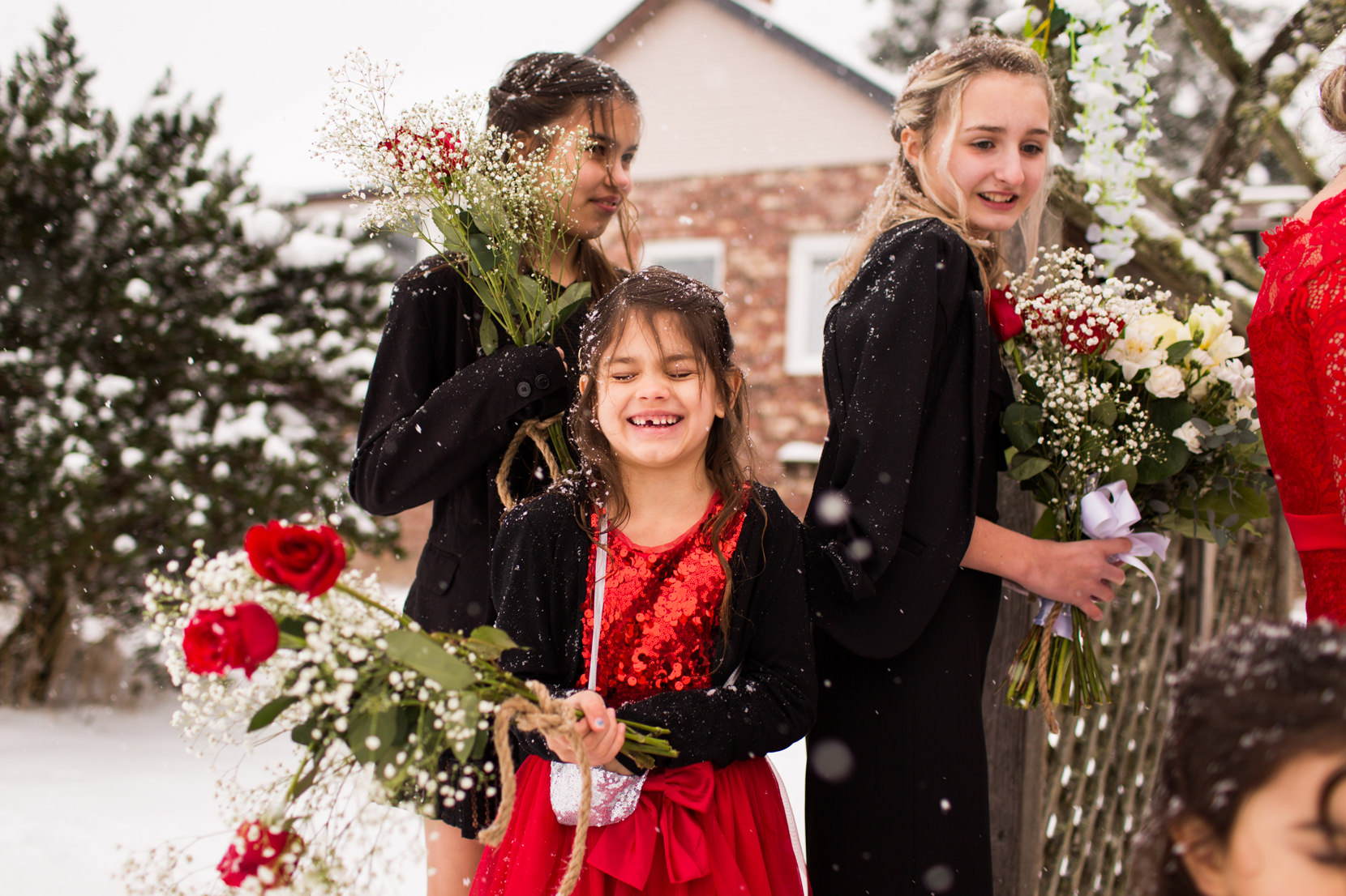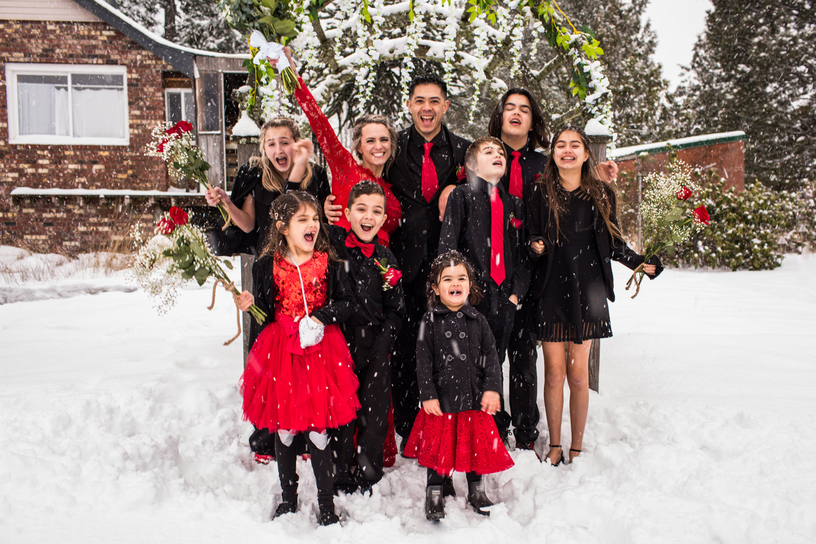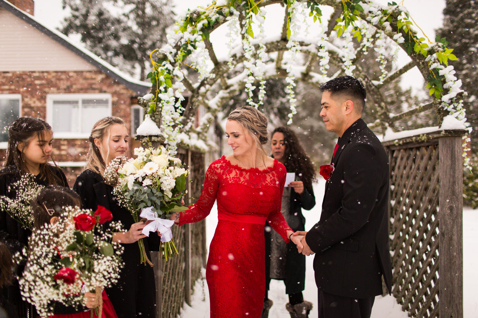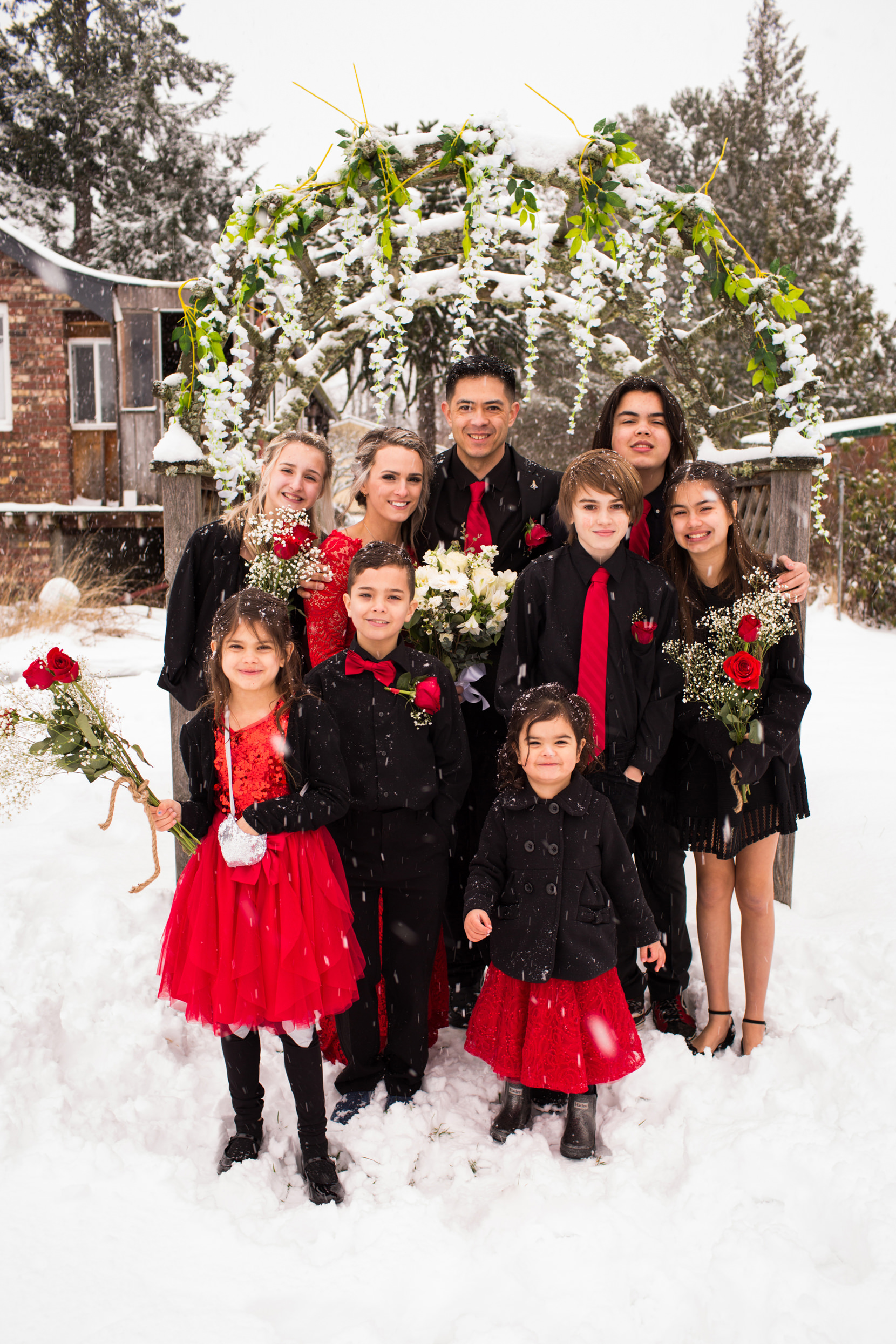 After over a foot of snow, we had a chance to capture so many incredible Anacortes private wedding photos in this couple’s backyard. The first thing I will say about these two is how lovely their entire family is! This wasn’t their first marriage, so they wanted to include their wonderful children in this special backyard ceremony. As you scroll down, you’ll see the family photos we captured as the snow fell that afternoon.