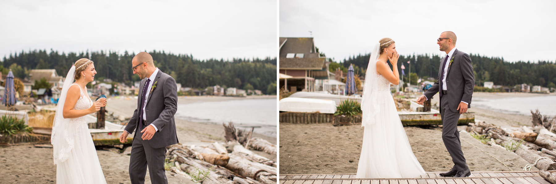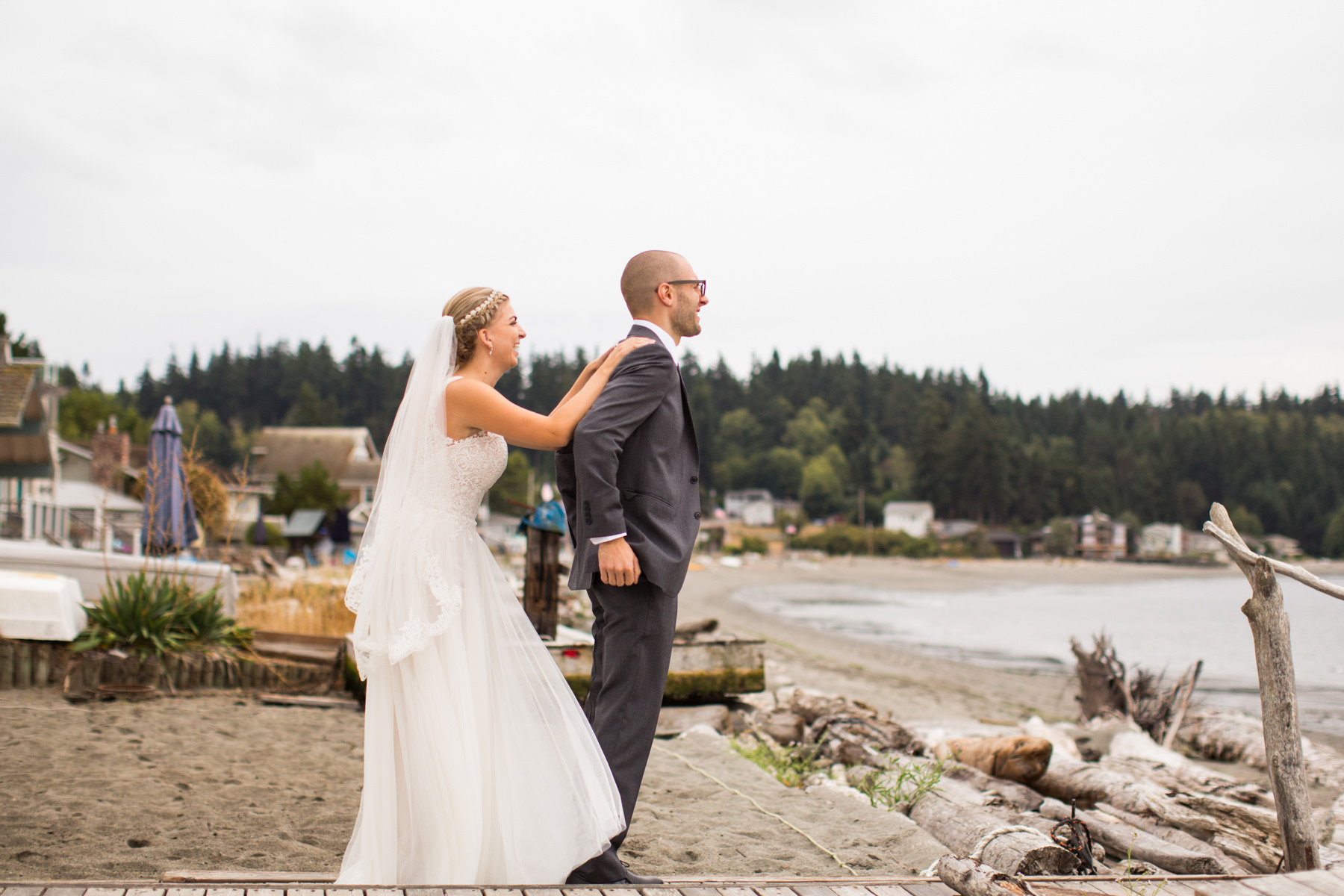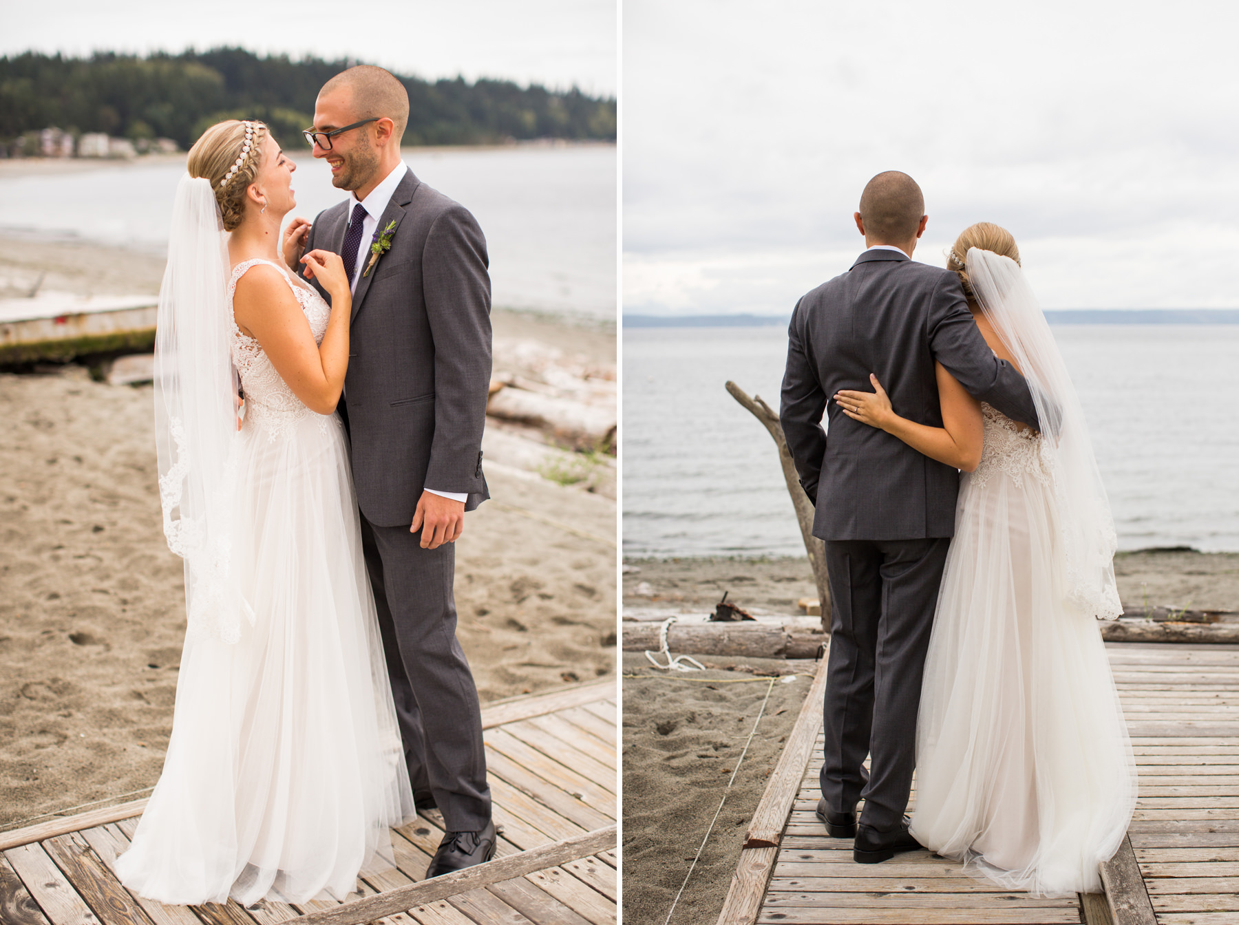 After growing up on Whidbey Island and being acquaintances for years, one day these two started passing messages back and forth via Facebook. After spending a few dates together it was clear they had an instant “love connection” and the rest is history. For their engagement session, we took photos at Molly’s parents summer cabin by the beach. I love getting the chance to know couples on their engagement sessions because it helps them feel more comfortable having me around for the wedding day.
