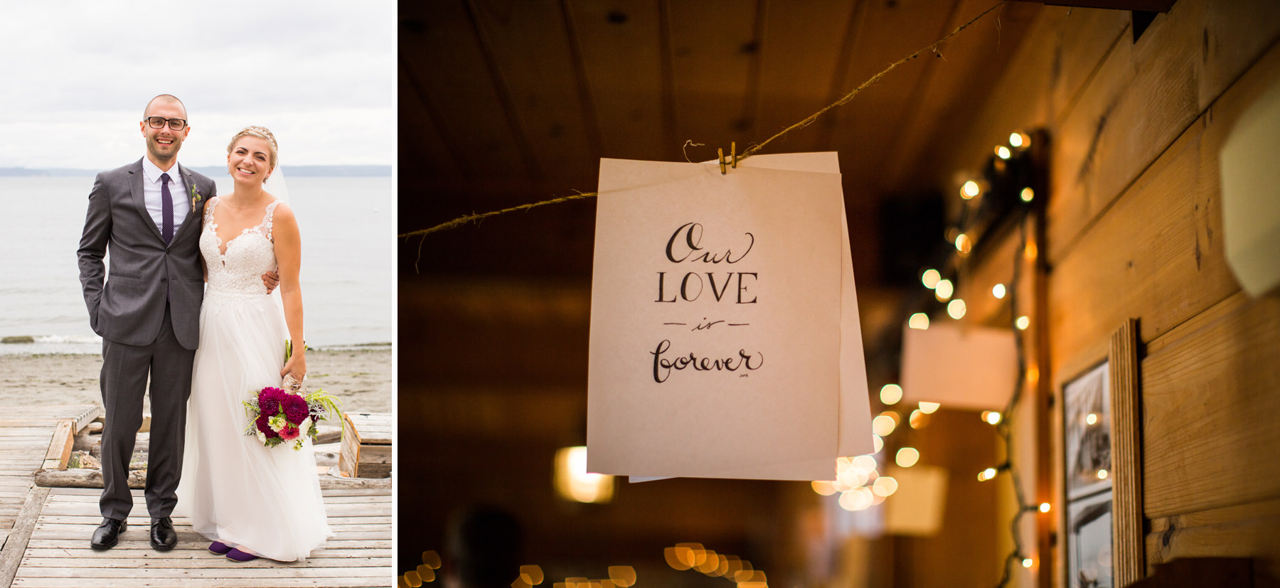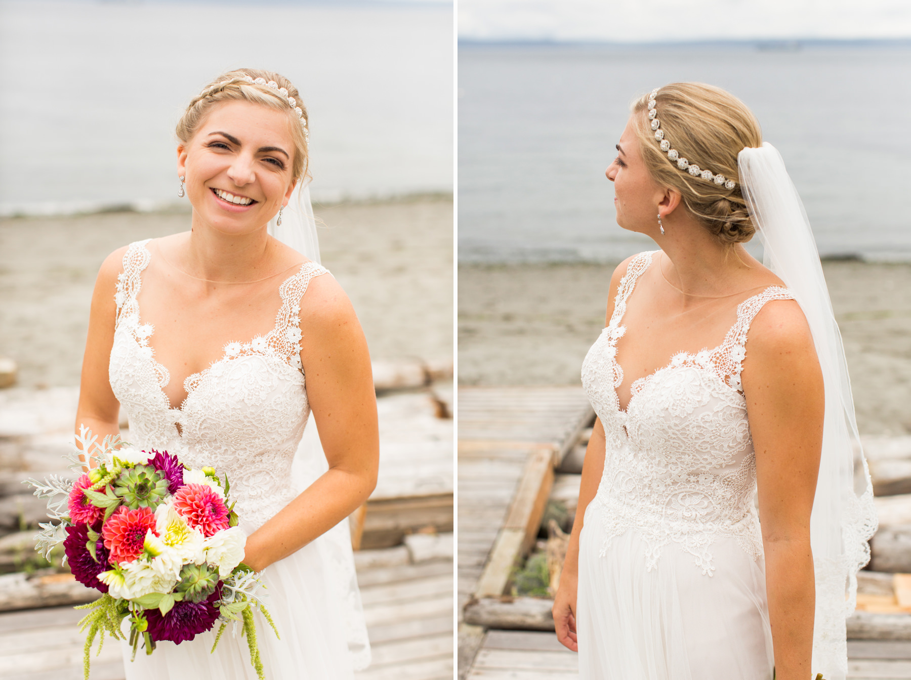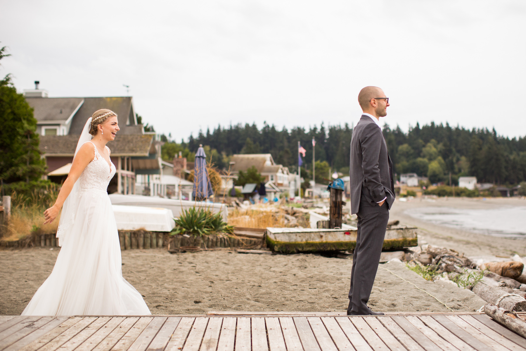 After growing up on Whidbey Island and being acquaintances for years, one day these two started passing messages back and forth via Facebook. After spending a few dates together it was clear they had an instant “love connection” and the rest is history. For their engagement session, we took photos at Molly’s parents summer cabin by the beach. I love getting the chance to know couples on their engagement sessions because it helps them feel more comfortable having me around for the wedding day.