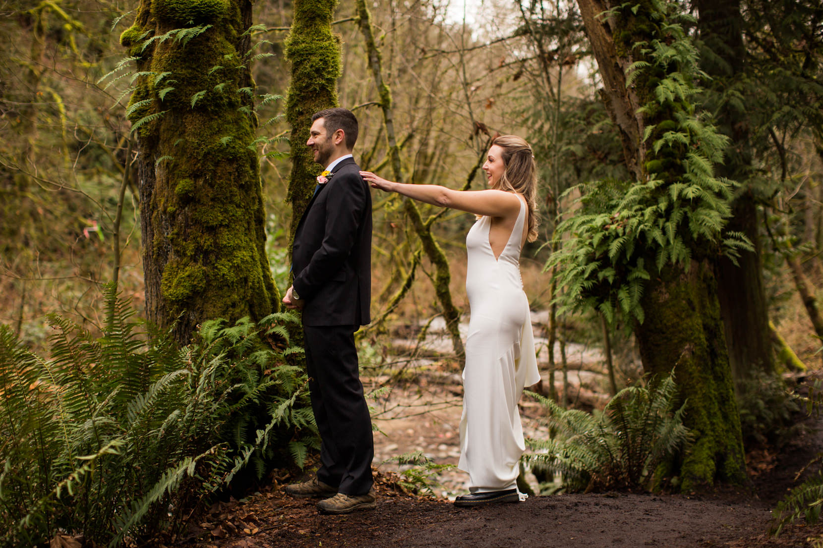 We met up at the Coal Creek Trail to take their first look photos. We were so thankful it wasn’t raining (though it was super cold). So many epic photos captured in the forest and down by the stream.
