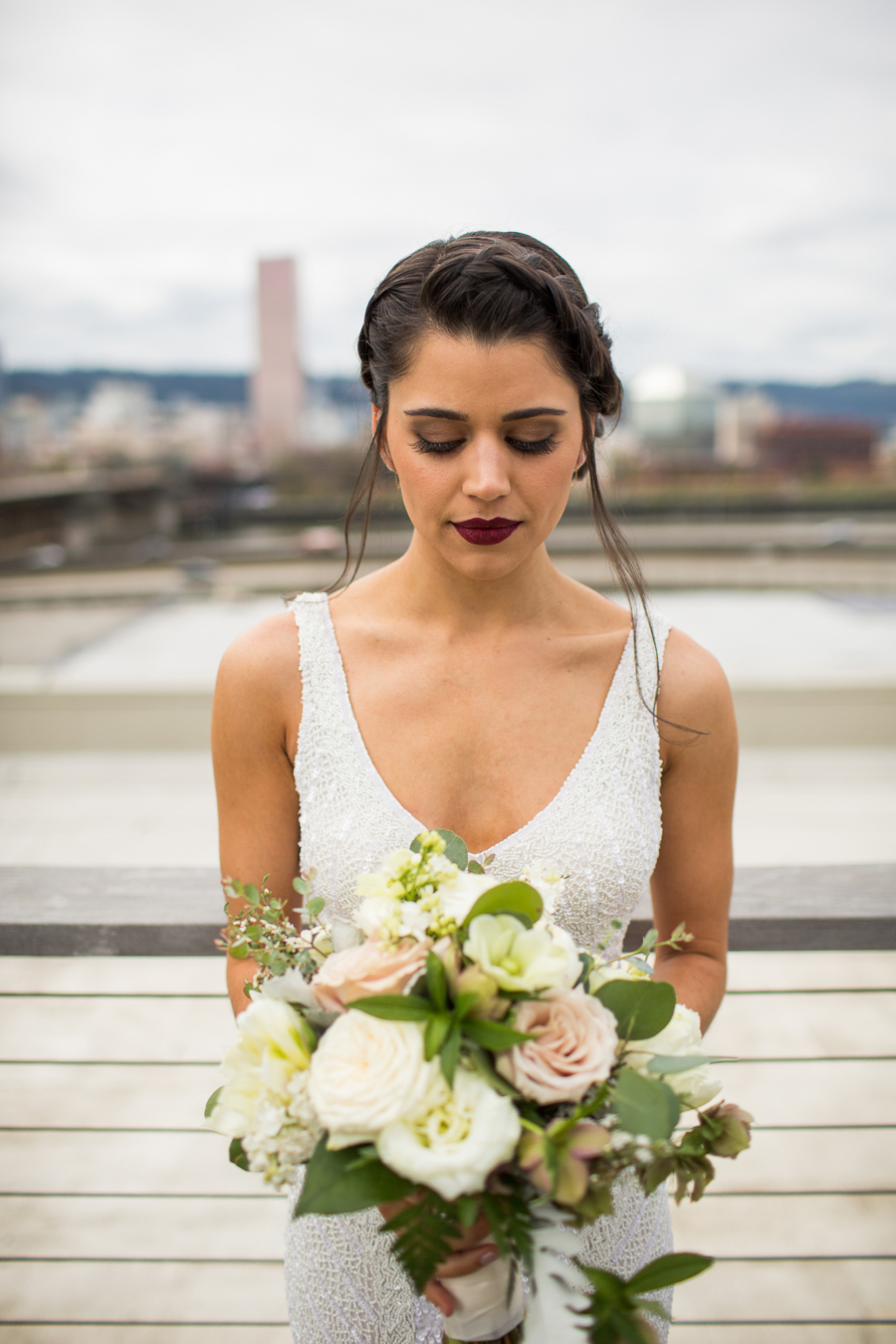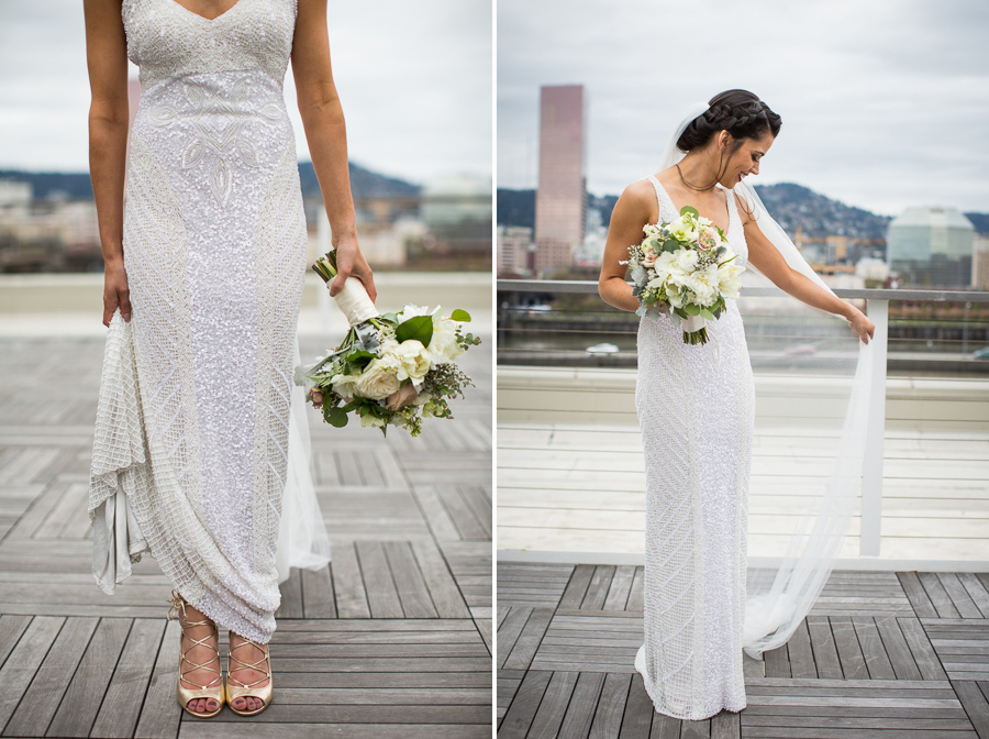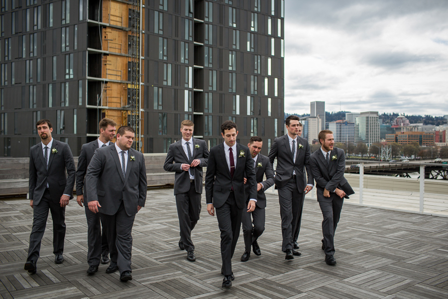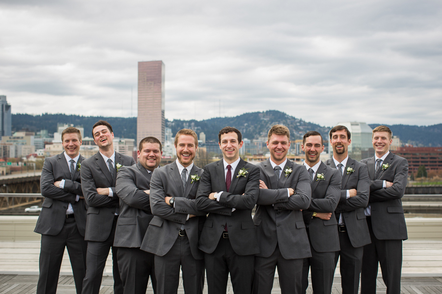 Some of Nick’s buddies went to SPU with my younger brother Ross, and therefore Ross DJed the wedding (DJ Ross Beck), while Sid and his girlfriend Ali (www.SidBeck.com) shot video of the wedding. Let’s just say, Nick + Sara did it RIGHT by hiring the “Tri-BECKta.” Julia had a blast with the girls as I captured the guys playing cards and enjoying Fireball shots; classic groomsmen! After taking a ton of epic photos on the rooftop of the Exchange Ballroom (overlooking downtown Portland), we enjoyed the ceremony and then a wonderful reception catered by Vibrant Table Catering & Events. The wedding was planned by the talented Ella Events, and flowers done by Columbia City Bouquet from Seattle, WA.
