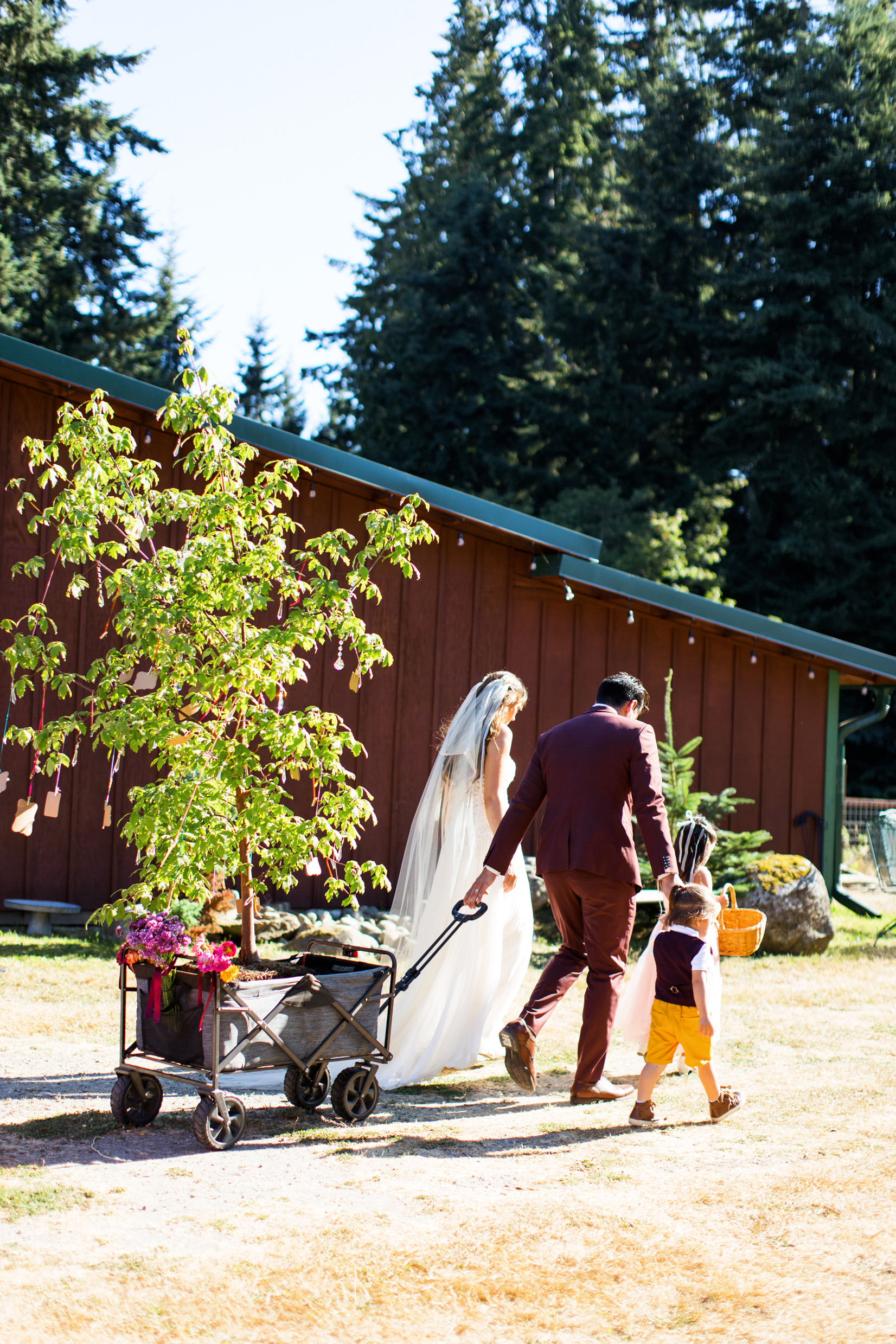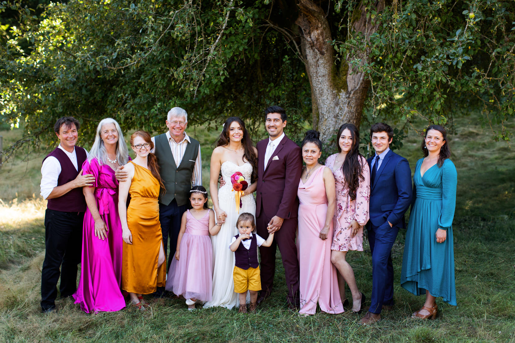 Kevin and Claire’s Private Whidbey Island Wedding Photos were filled with heartfelt moments, a tree-planting ceremony, and posing pups! Their wedding was a true celebration of love and family. The ceremony took place on the bride’s mother’s property, surrounded by gorgeous open green fields with trees, making for a serene and intimate setting. As a photographer, I was incredibly honored to be a part of such a special day!