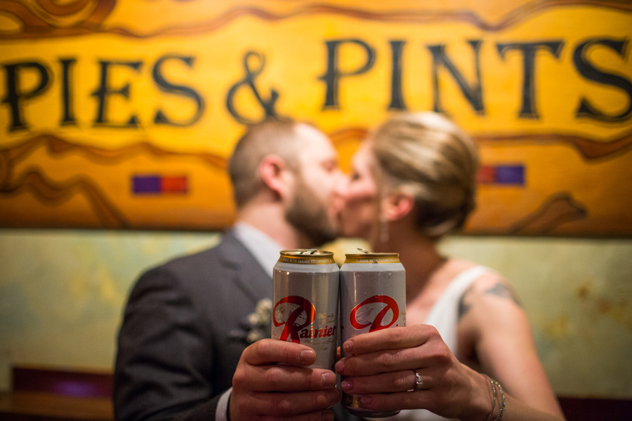 Sarah and Stuart planned an epic wedding day including a stop to Pies and Pints (with the wedding party) on our way to the venue. Great to have a couple Rainier toasts before the ceremony and reception at Georgetown Ballroom in Sodo.