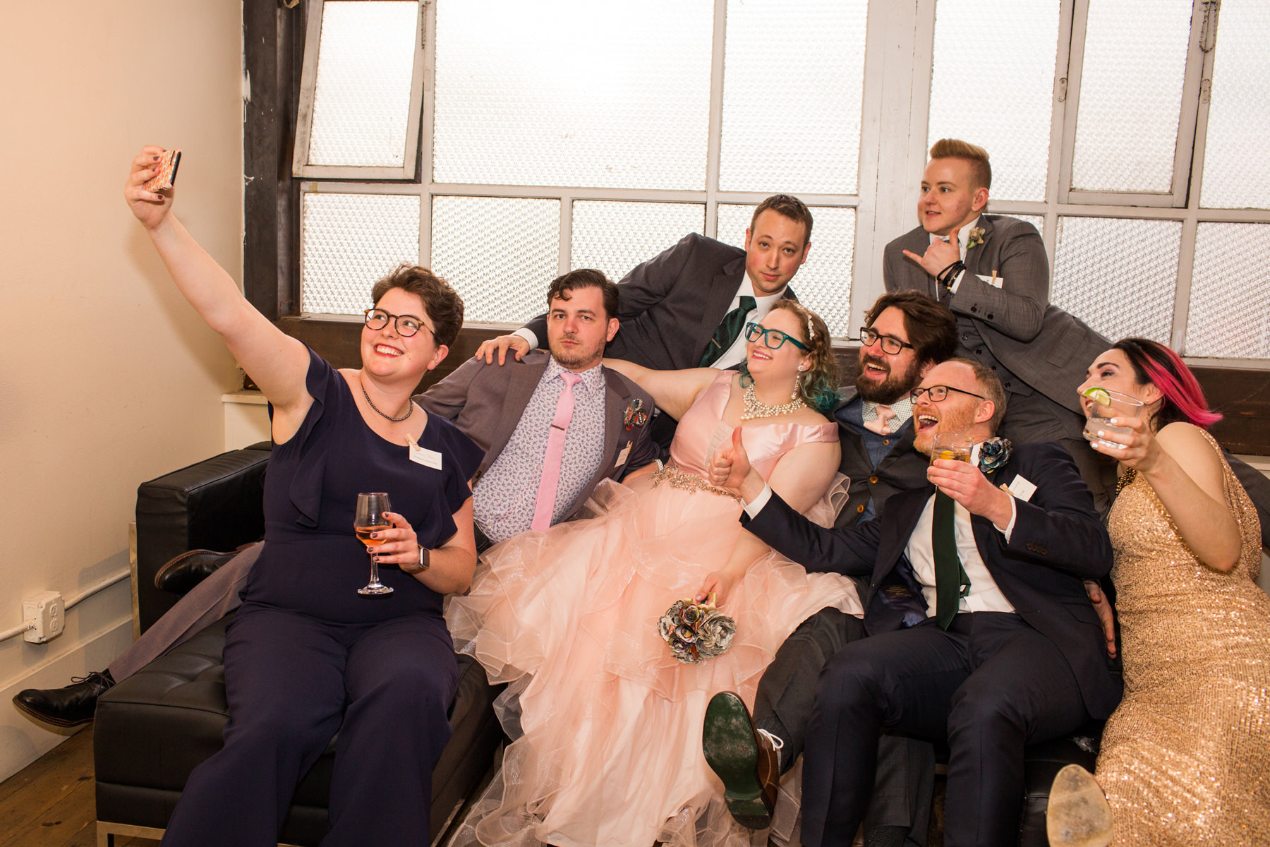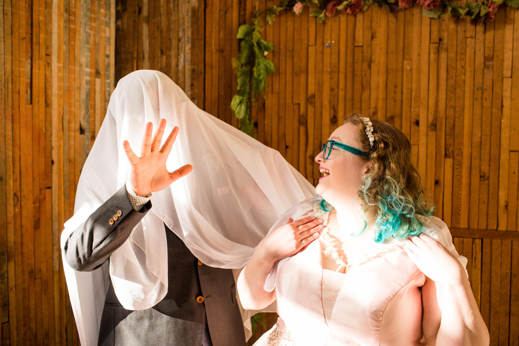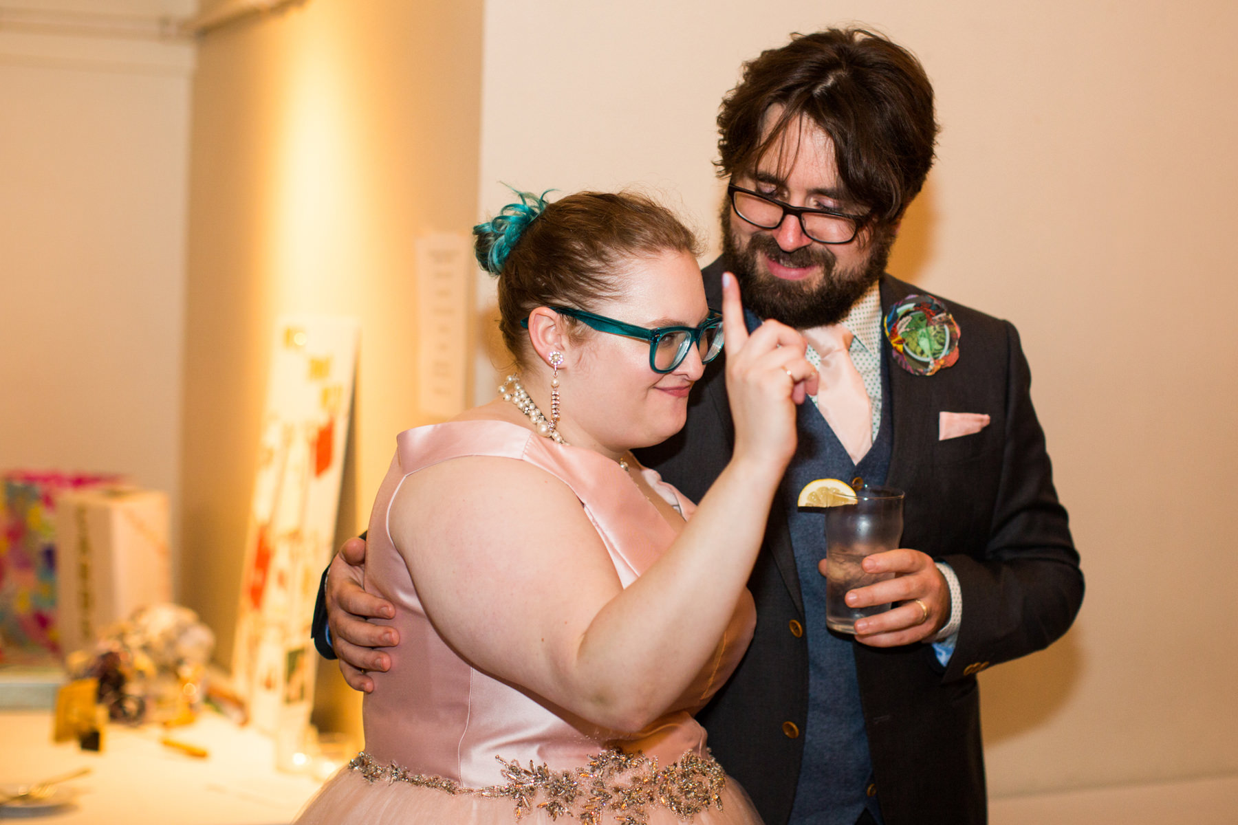 All you have to do is look at the photos to see these two care so much for each other and their good friends/family. Their wedding was planned wonderfully, from the beautiful, small celebration (was about 60 people total), to the fantastic food and cocktails (provided by Sole Repair Wedding Venue), to the customized name tags each guest got to wear when they arrived. It was a fun mingle-fest of curious conversation and endless laughs.