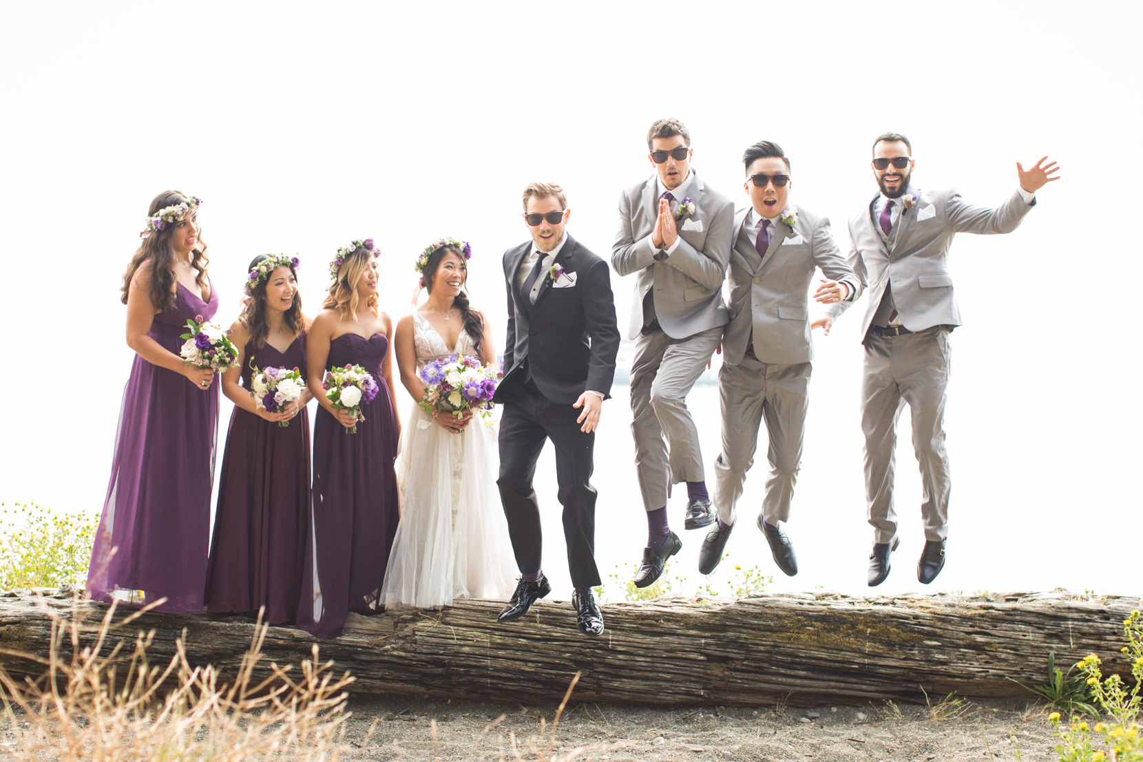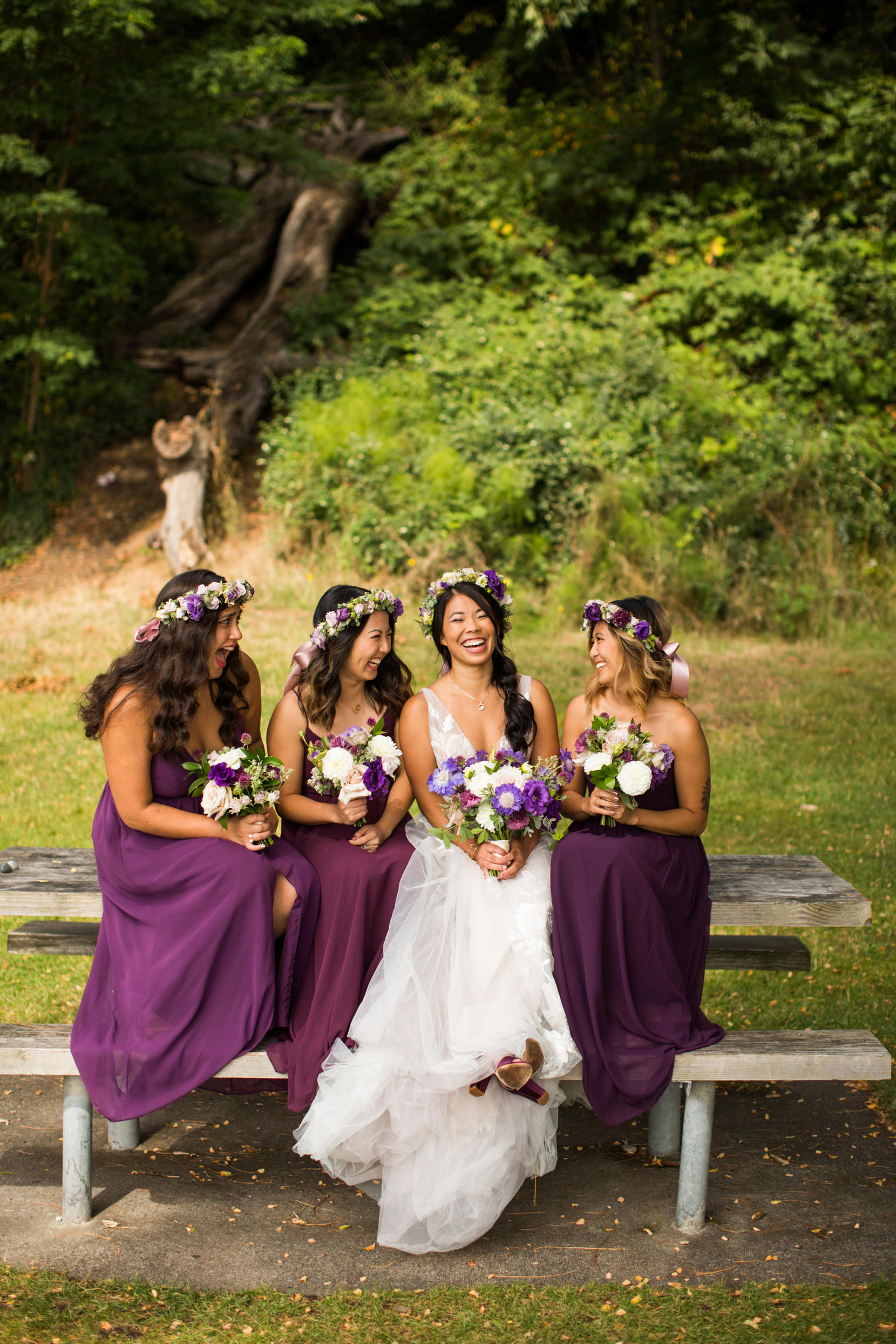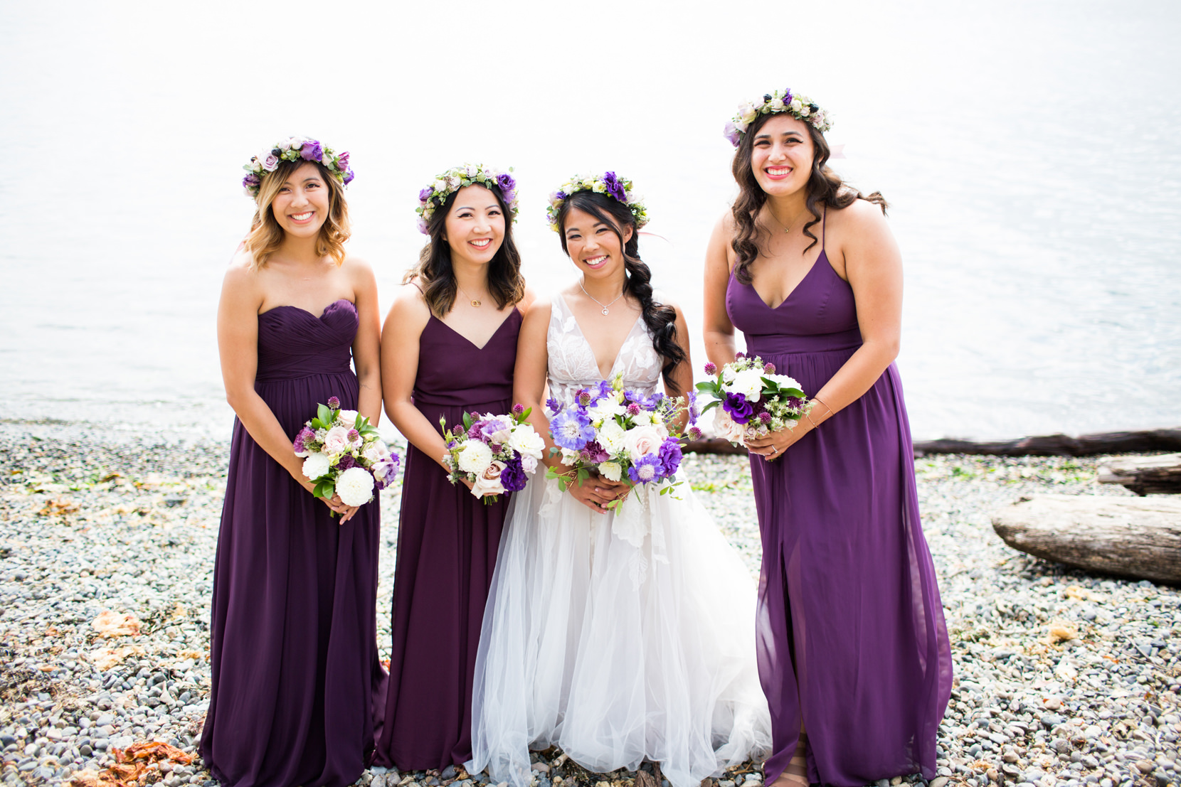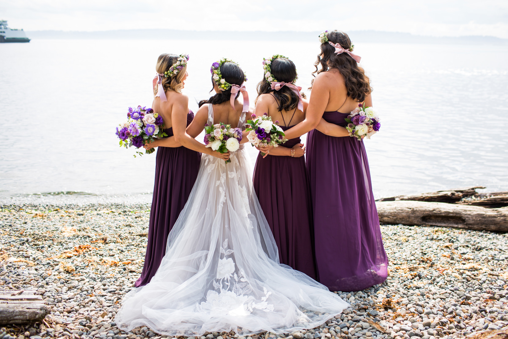 Thanks to Butler Valet service, the bridal party was transported over to Lincoln Park in West Seattle where we took photos down by the beach. It was forecasted to rain originally, but in classic Seattle fashion, at the last second the skies opened and we had sunshine!