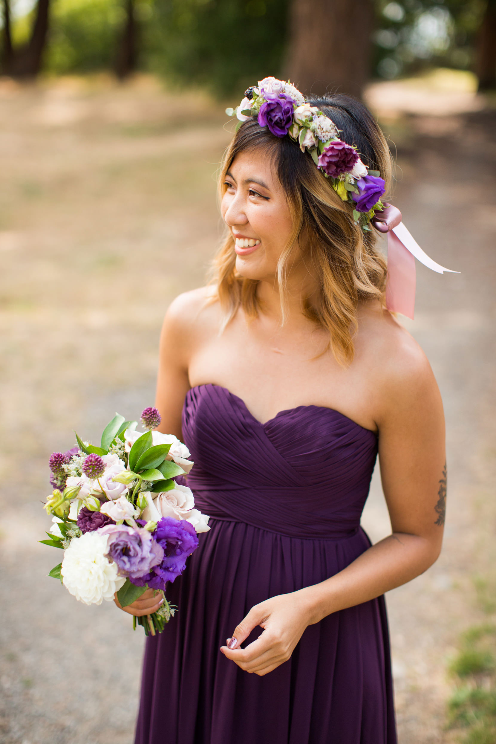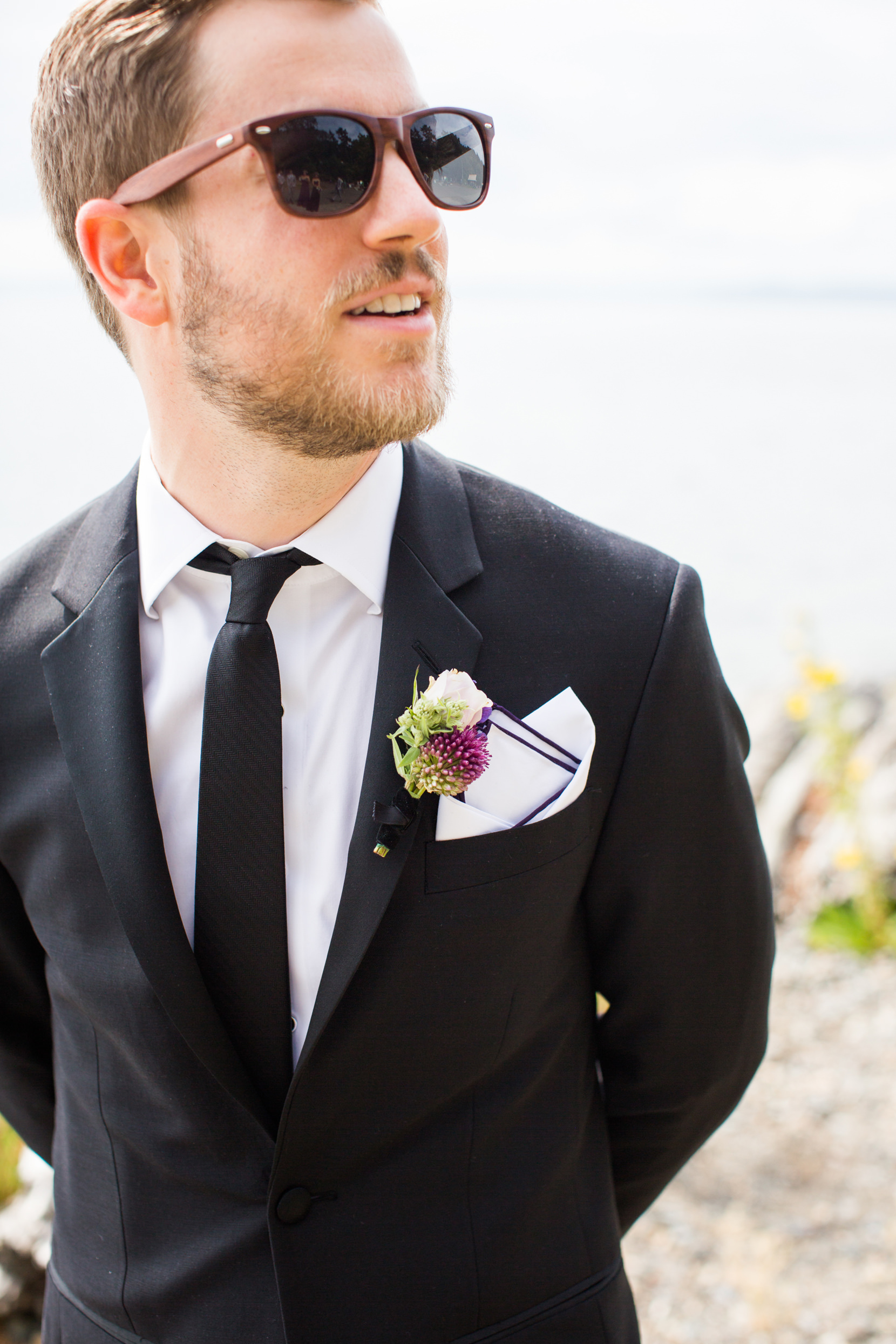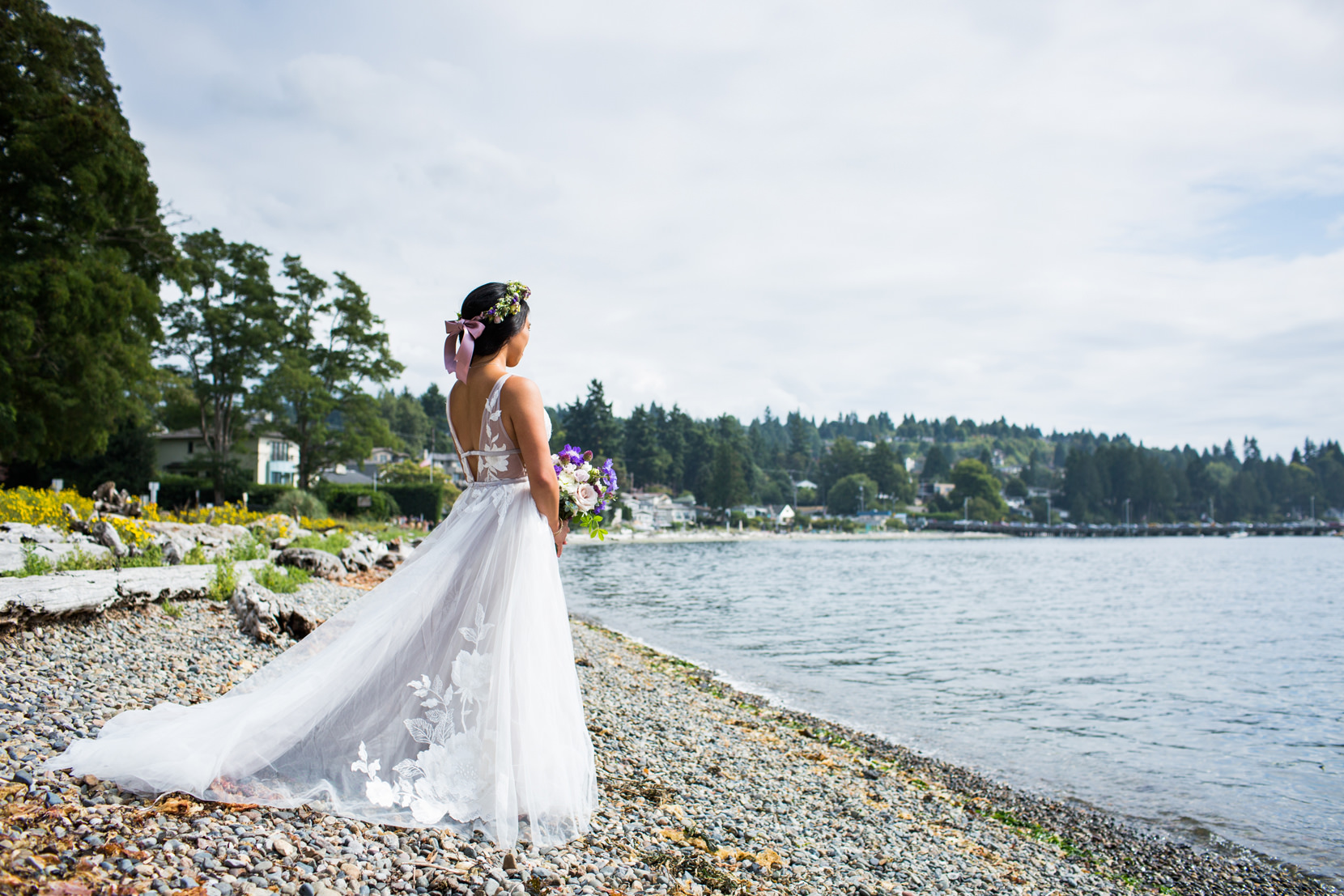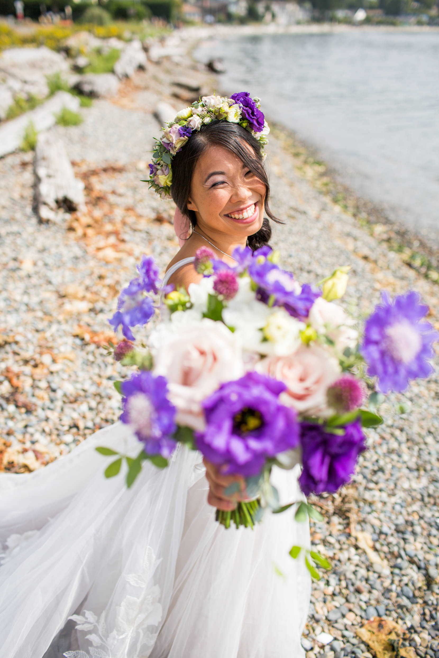 Thanks to Butler Valet service, the bridal party was transported over to Lincoln Park in West Seattle where we took photos down by the beach. It was forecasted to rain originally, but in classic Seattle fashion, at the last second the skies opened and we had sunshine!