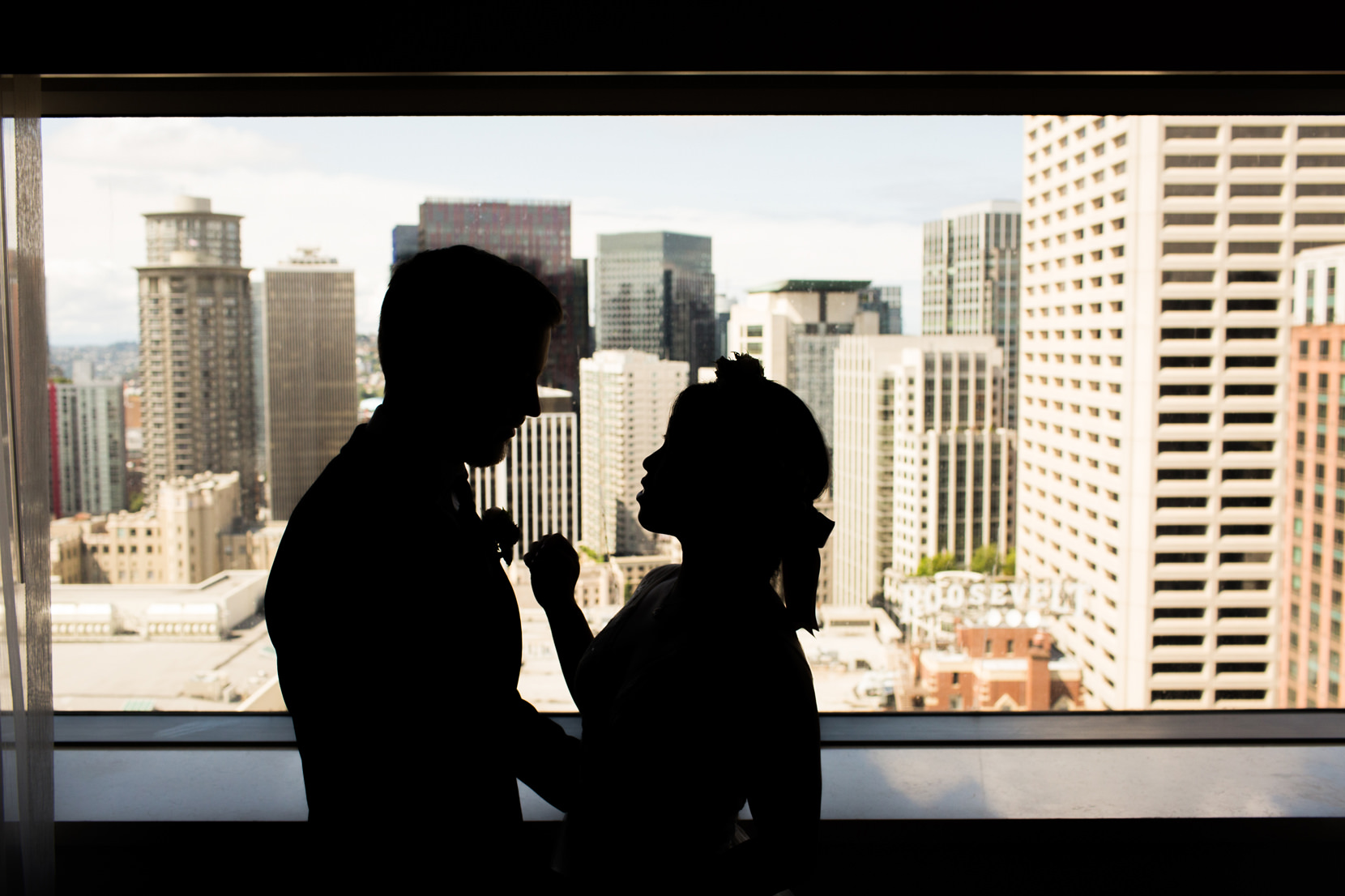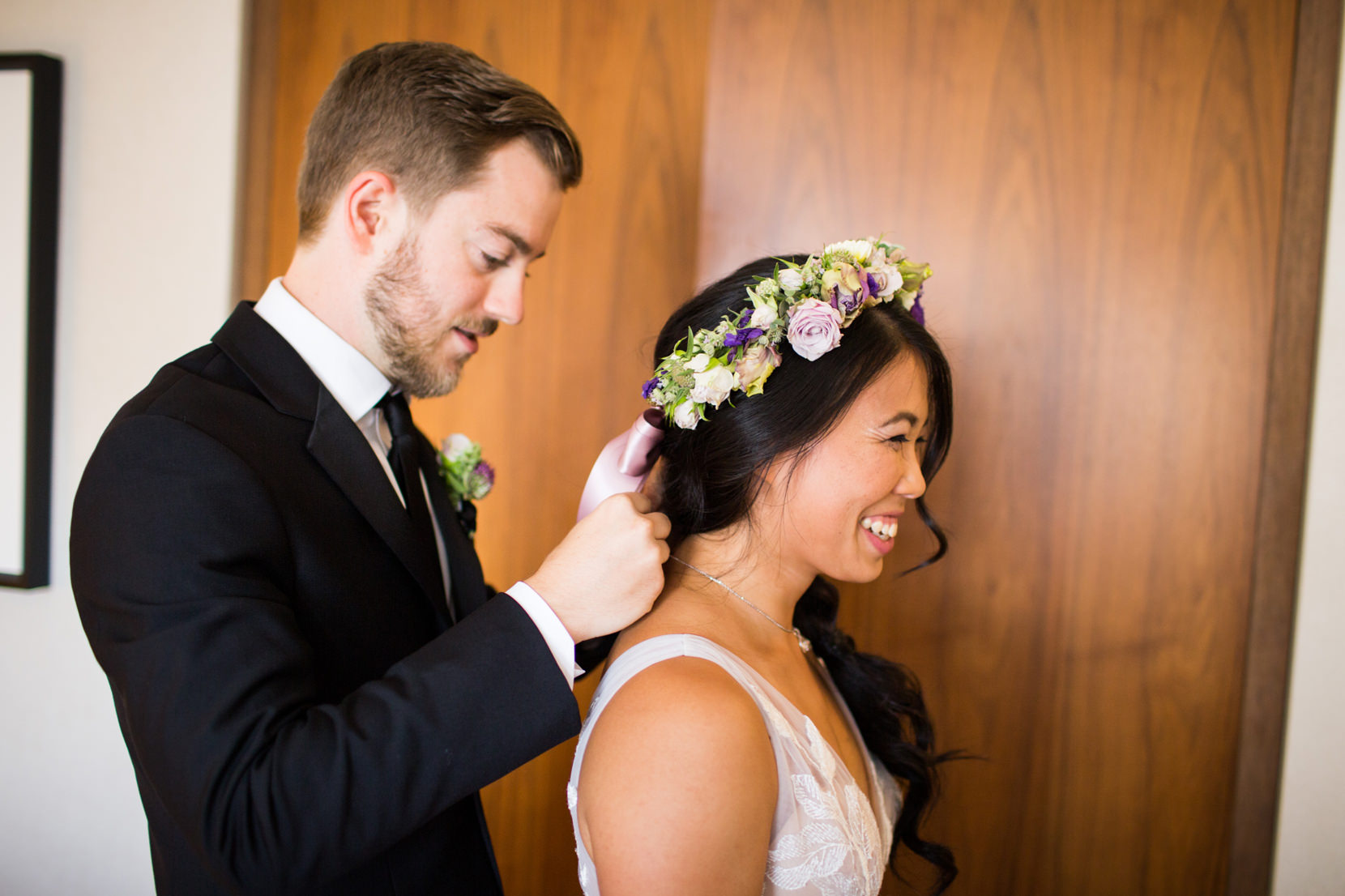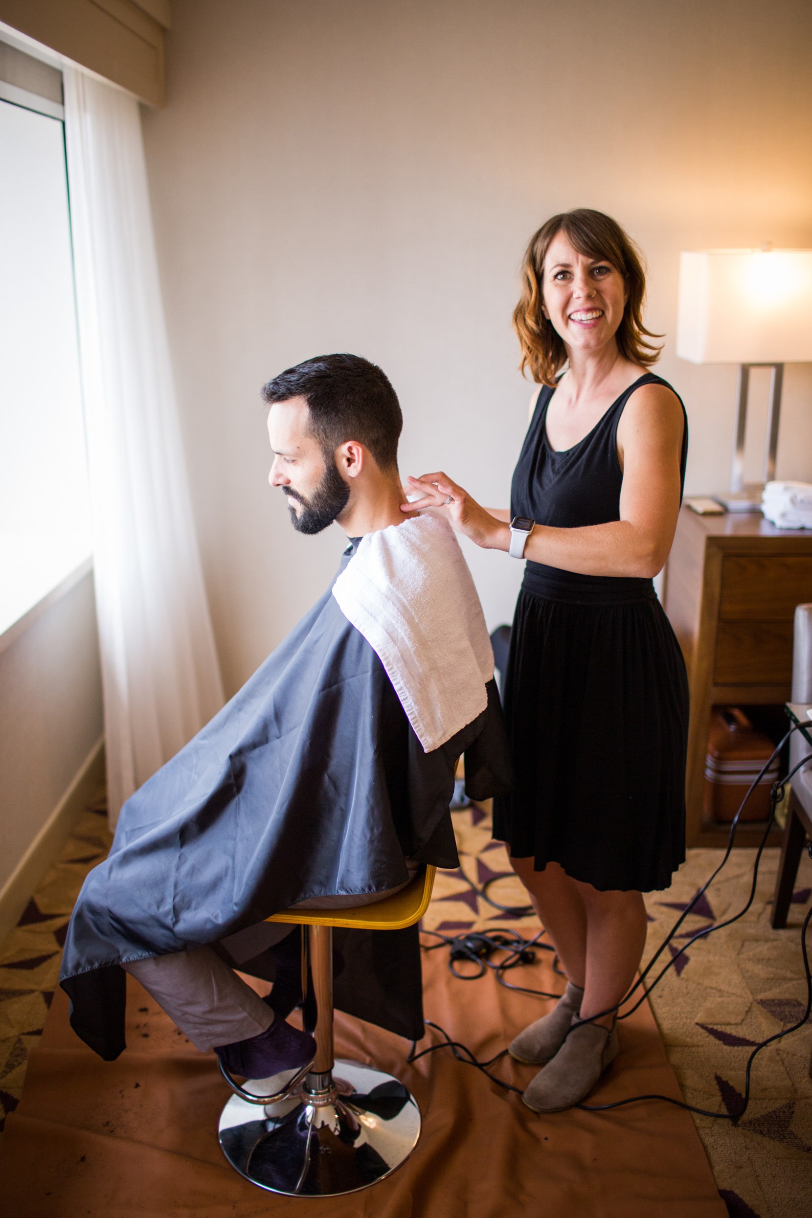 After the Tea Ceremony, I met them at the Sheraton Hotel in downtown Seattle where they both got ready for their wedding. Alex had Tied Knot Grooming come and give he and his groomsmen haircuts at the hotel while Melody had Sweat Pea Beauty come and do hair/make-up for her and her bridesmaids.