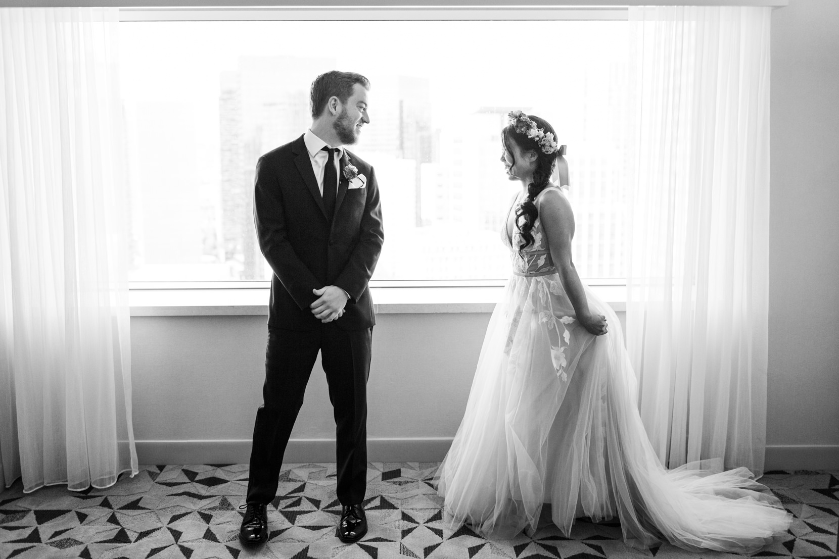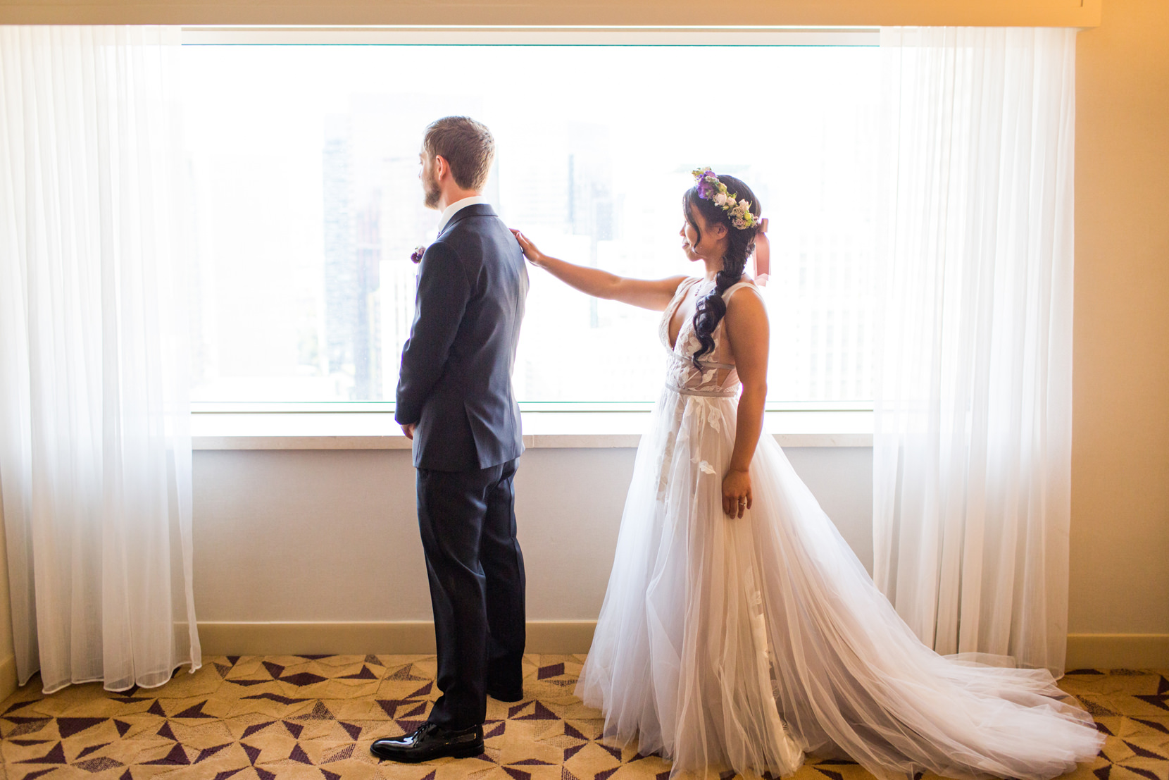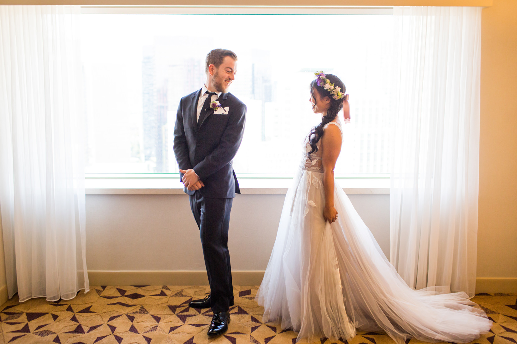 After the Tea Ceremony, I met them at the Sheraton Hotel in downtown Seattle where they both got ready for their wedding. Alex had Tied Knot Grooming come and give he and his groomsmen haircuts at the hotel while Melody had Sweat Pea Beauty come and do hair/make-up for her and her bridesmaids.