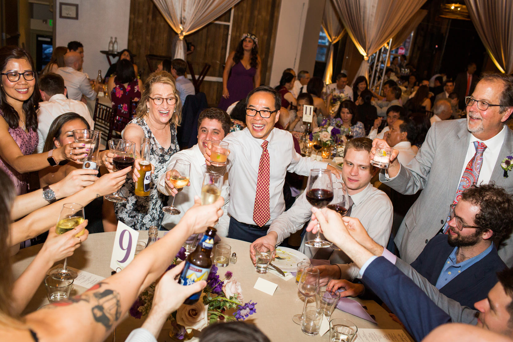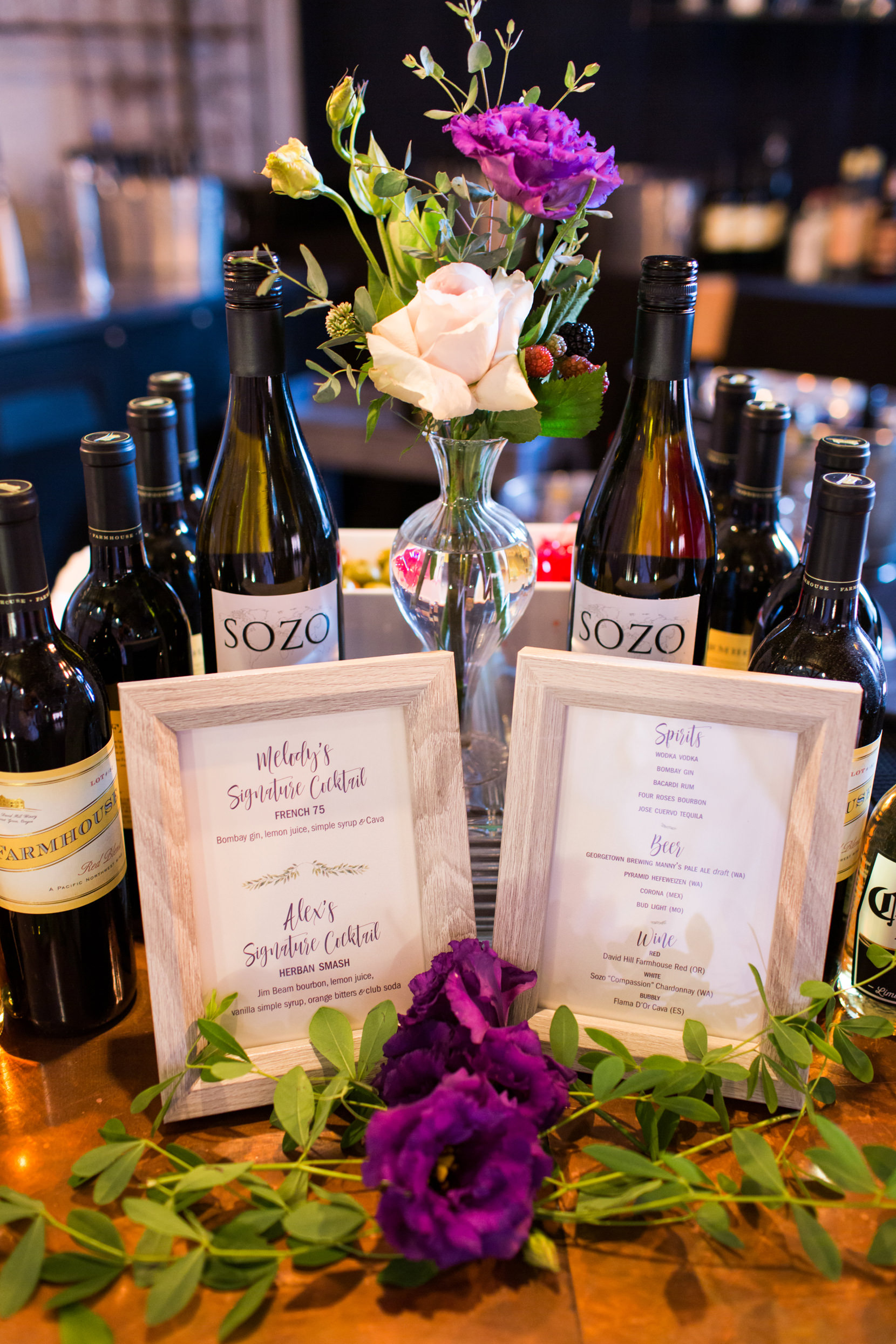 Upon arriving Sodo Park, everyone was welcomed with the warmth of gorgeous decorations, and both Melody and Alex’s family’s welcoming presence (you can scroll below and you’ll see Melody’s father insisted on toasting with each guest at the wedding before the night was over; what an extraordinary host!) After the beautiful ceremony concluded, cocktail hour was afoot and I couldn’t help myself taking way too many photos of all the wedding details, food, etc. It was quite a spread of lovely eye-candy, not to mention the meal prep by Herban Feast is rarely matched in the greater Seattle area.