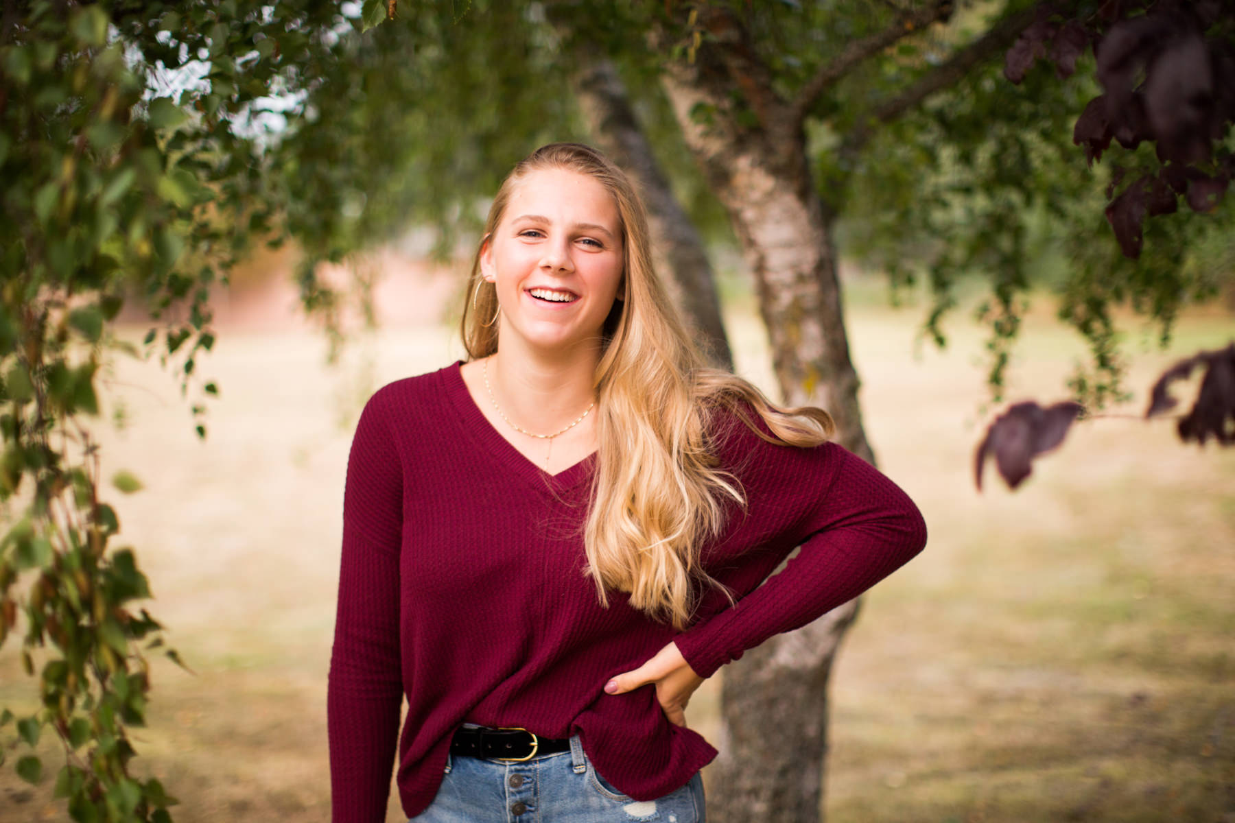 I had a blast taking Joey’s Anacortes High School Senior Photos! She found out about me through her friends on the volleyball team at Anacortes High School. She was immediately very comfortable posing for the camera; we walked around Washington Park (in Anacortes, WA) and found some amazing spots.  There are so many incredible locations and lookouts at Washington Park (if you’ve ever been there, you’ll know) — the beaches, grassy knolls overlooking the water, the huge trees on either side of the loop road, the gorgeous “strange tree” overlook, etc!