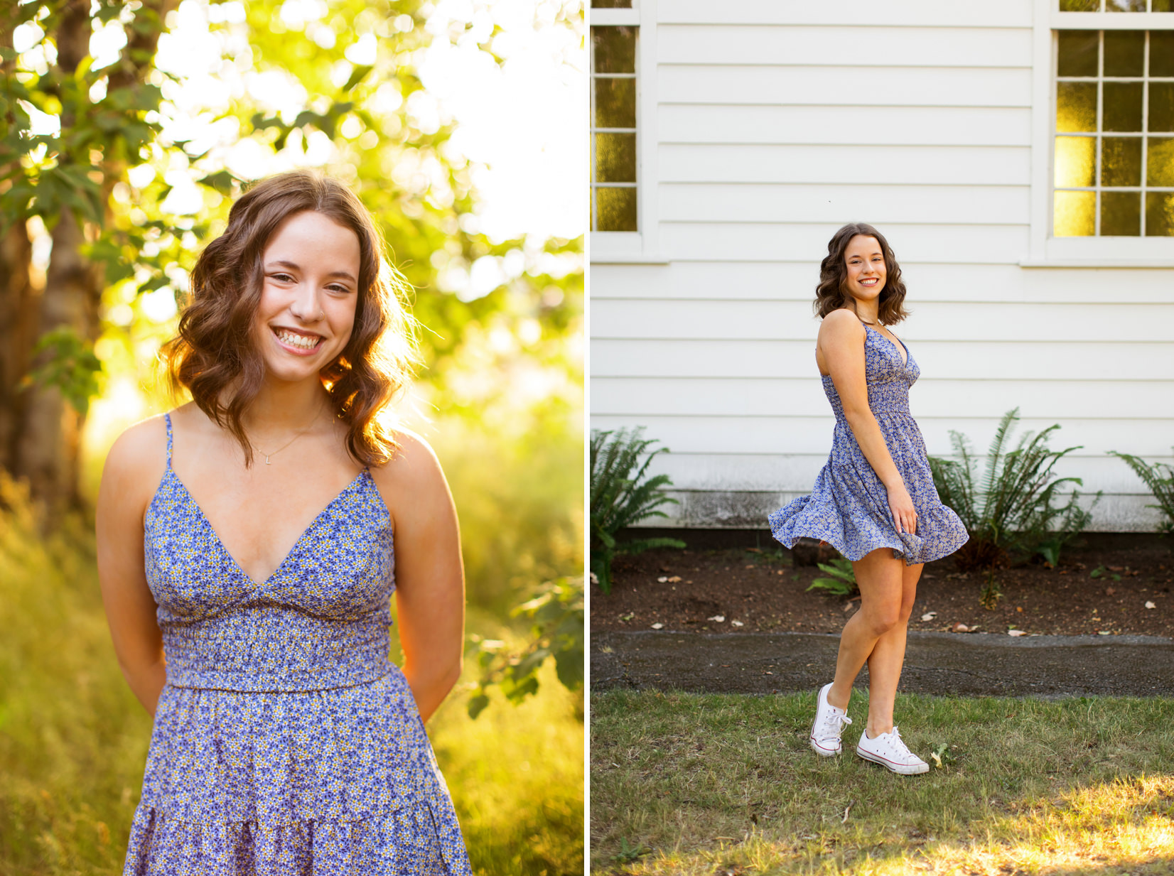 While scrolling below you will quickly see that I captured incredible photos of both these gals at Discovery Park! You will also notice one of my favorite poses for senior gals is playing with their dress at golden hour. It looks stunning with the orange back-light of the sun.