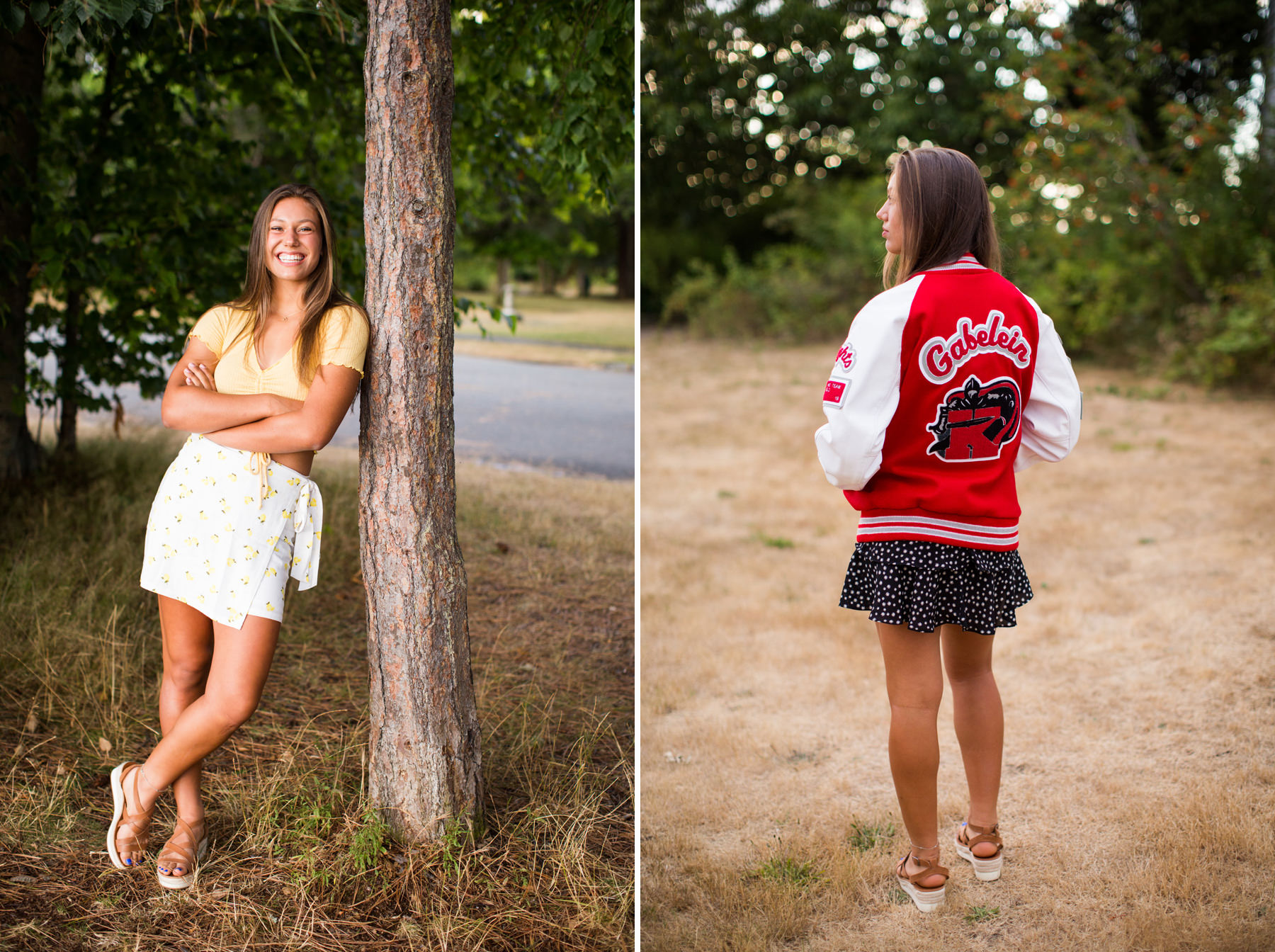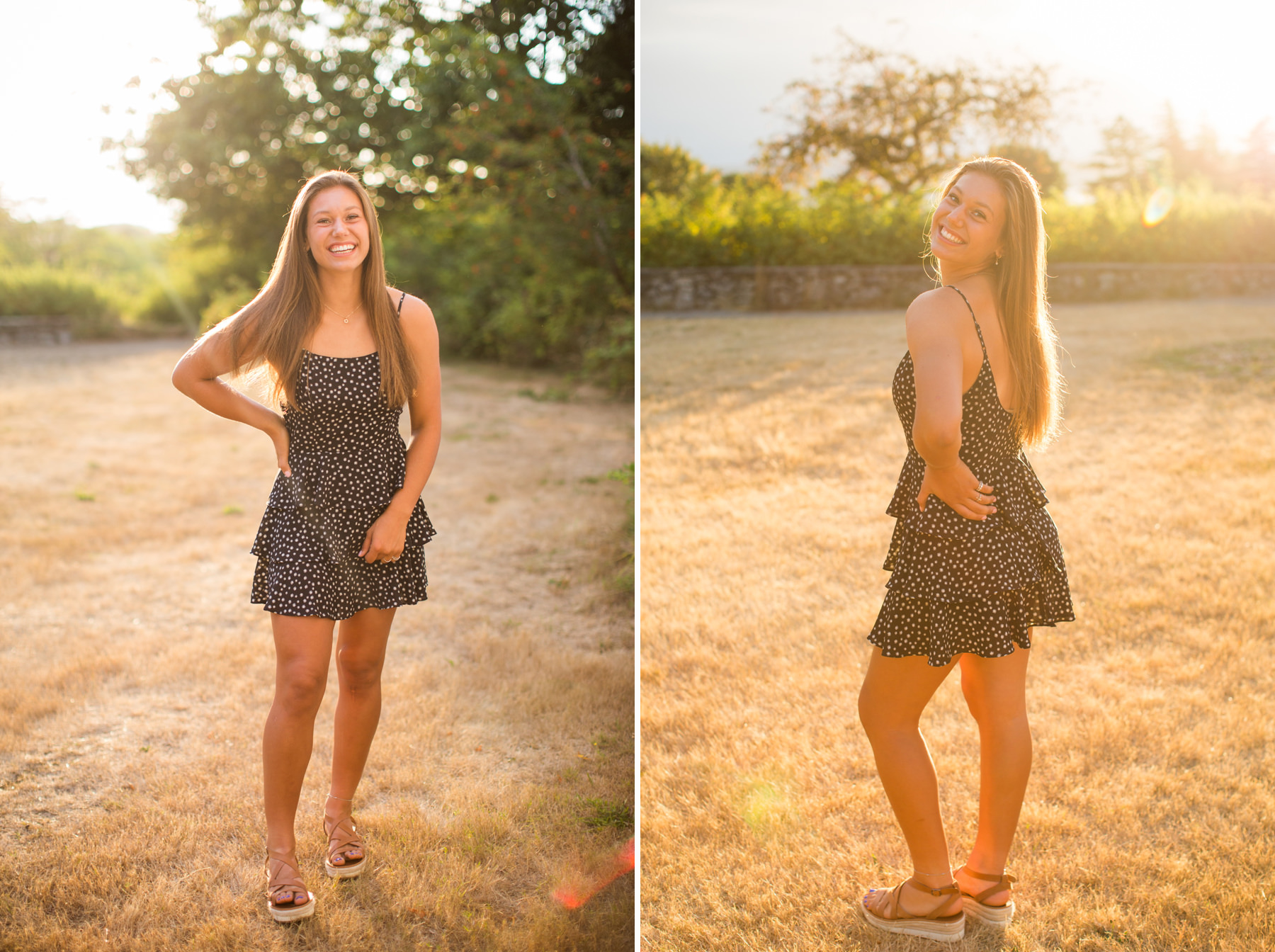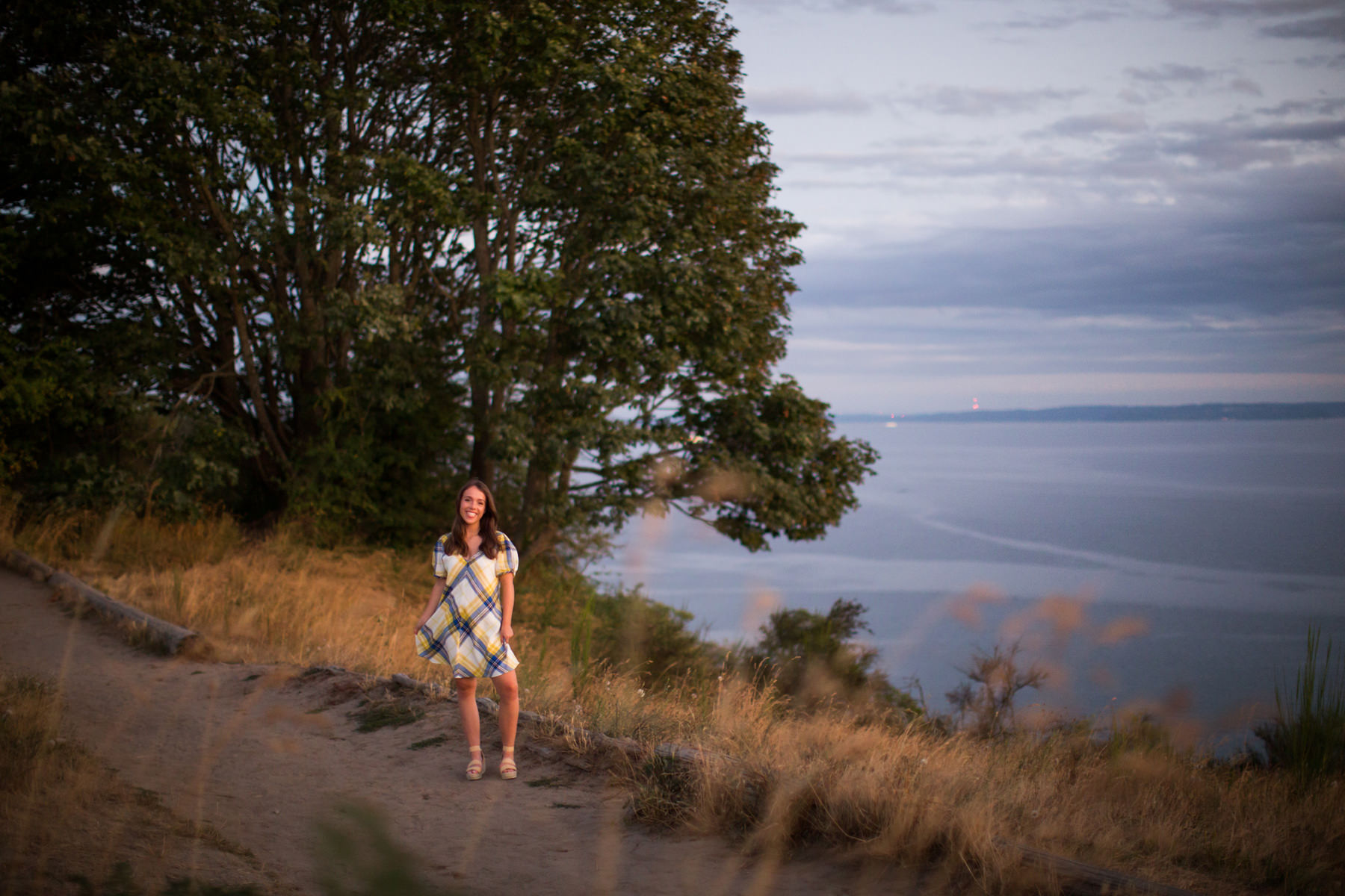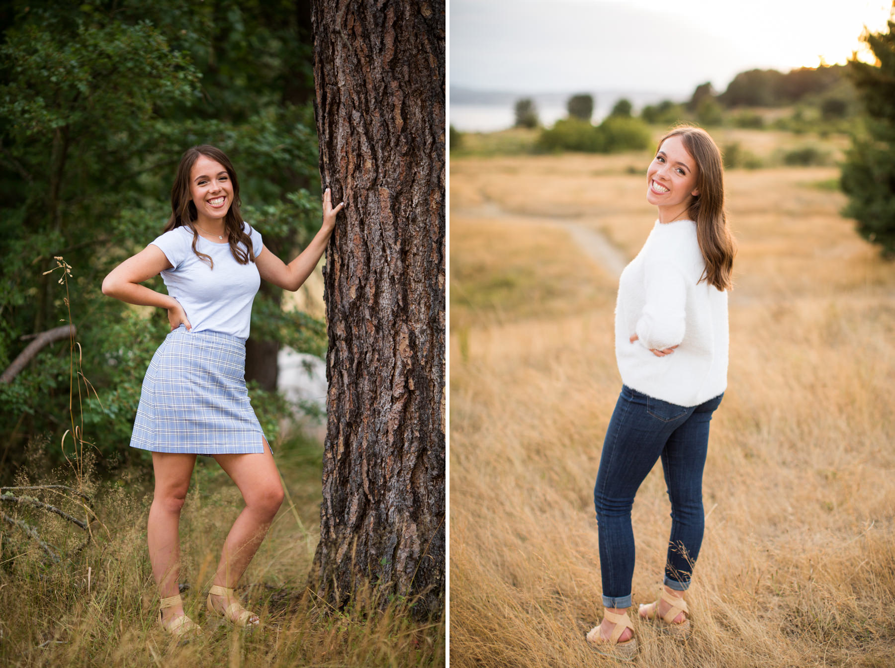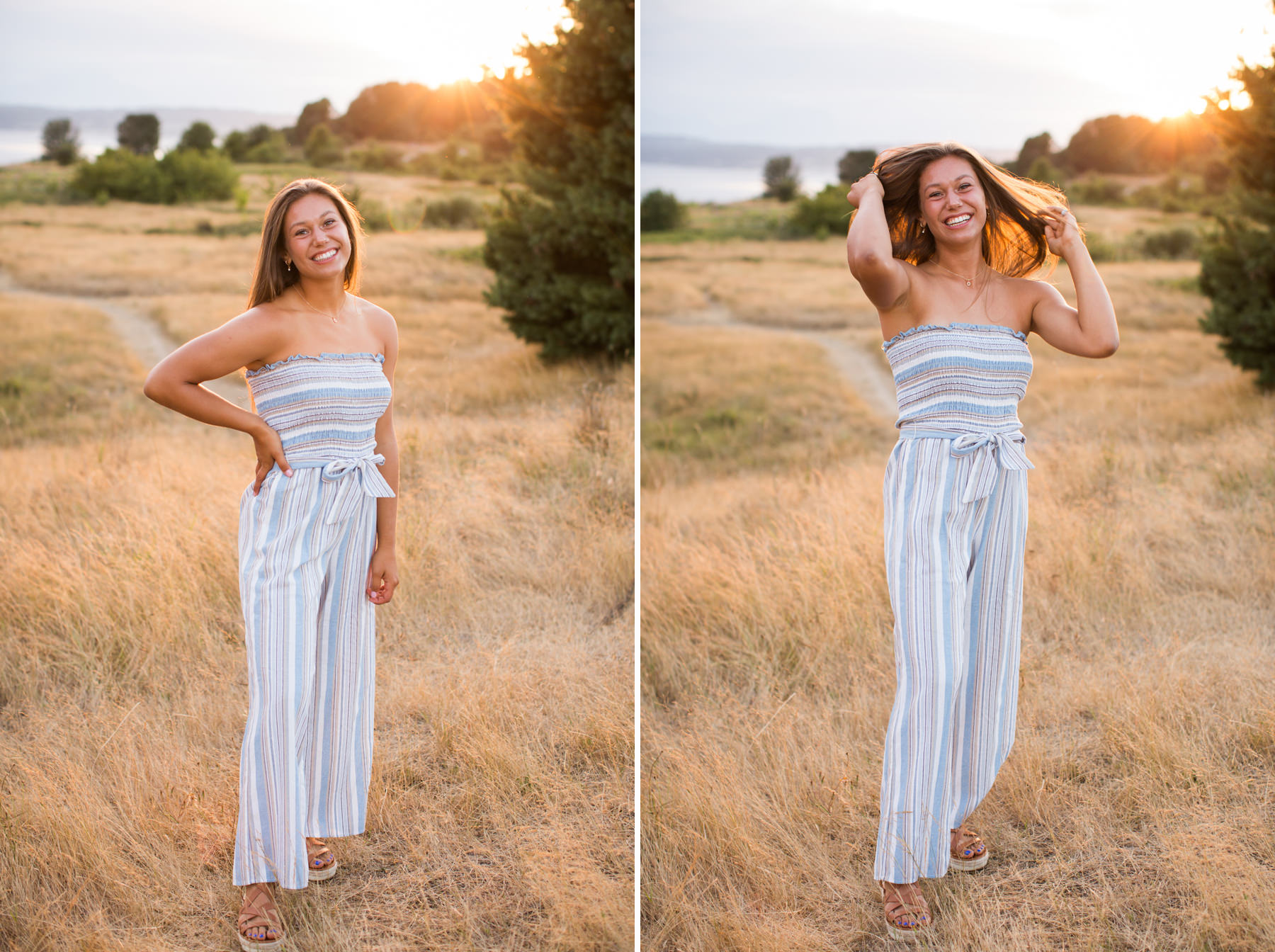 As you scroll below you’ll see that we captured some incredible photos of both Marin and Olivia at Discovery Park in Magnolia! One of my favorite poses for senior girls is playing with their dress at golden hour. It looks gorgeous with the orange backlight of the sun. Scroll to the bottom to see what I’m talking about.