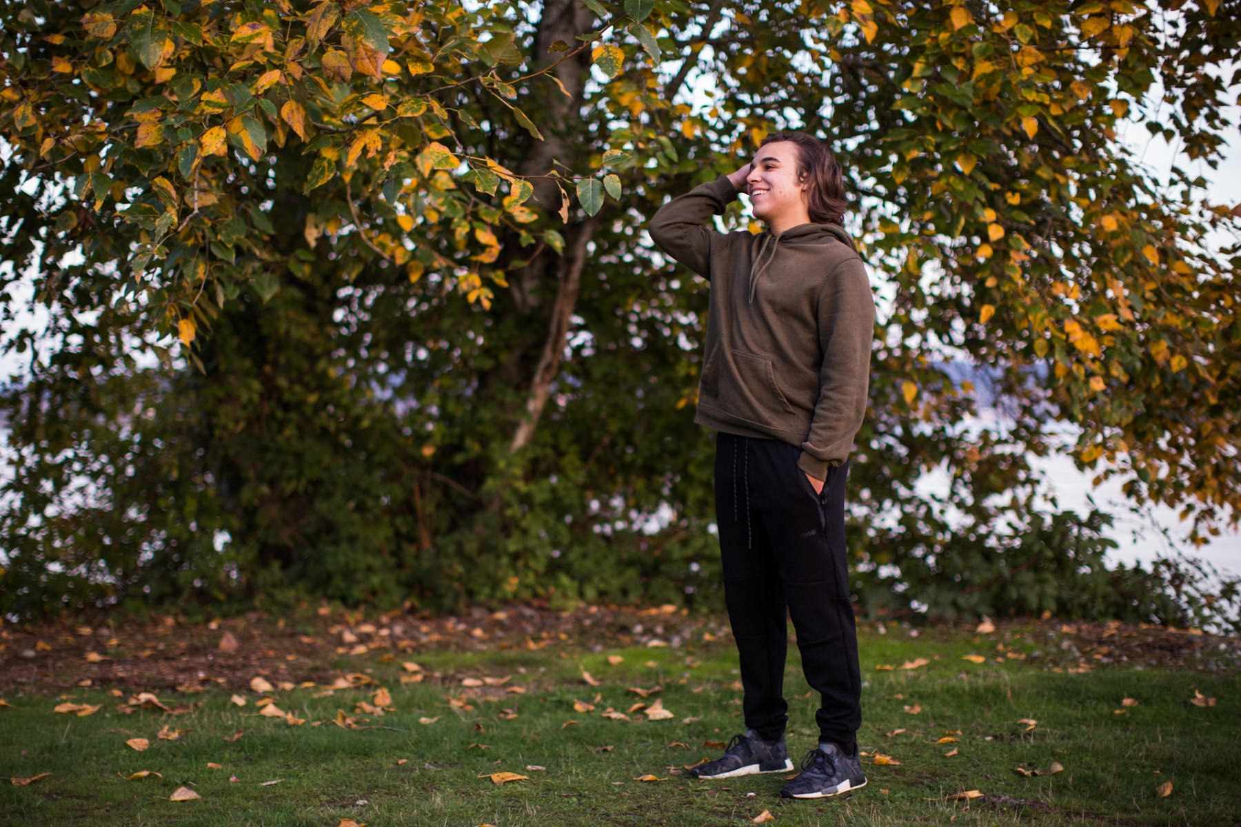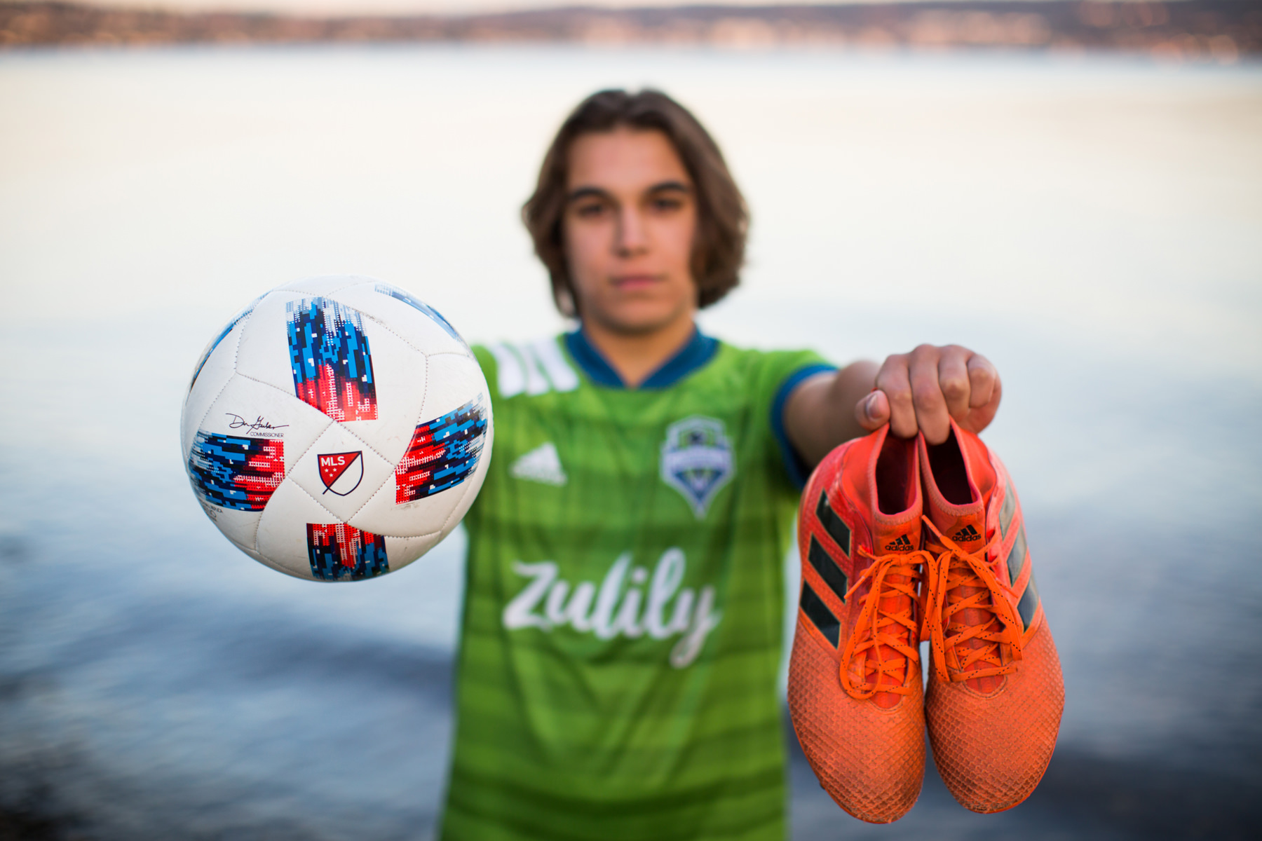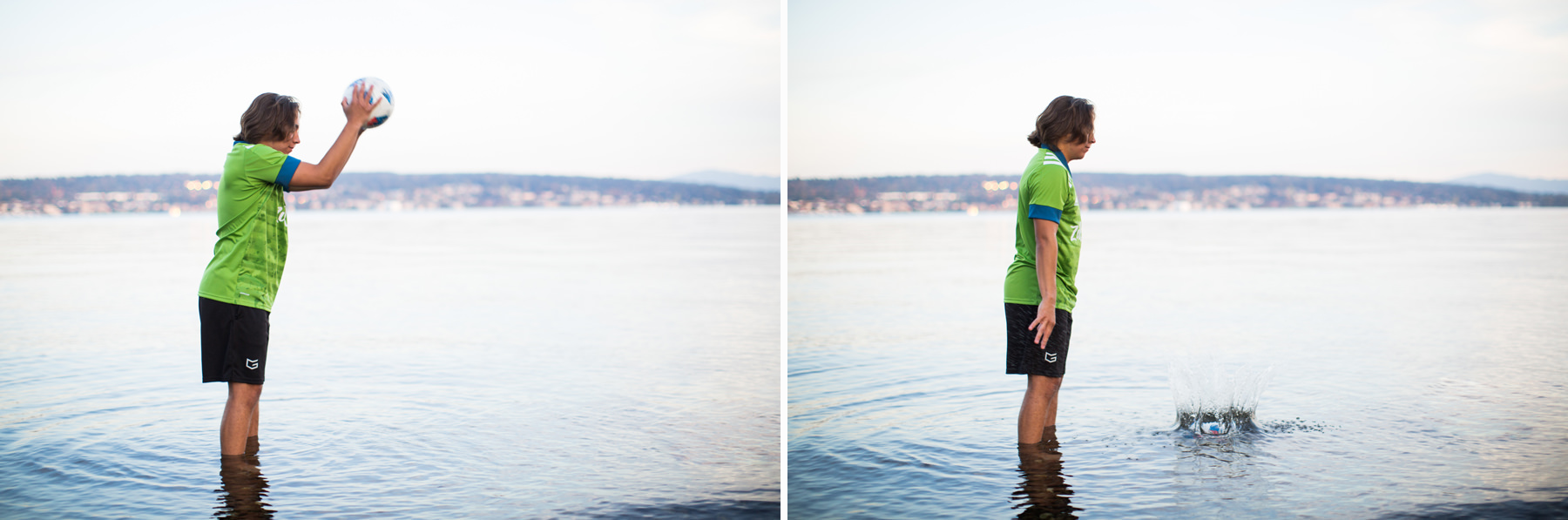 Zach was real creative with outfits and ideas—he really wanted some action shots juggling his soccer ball. As you’ll see below, those turned out amazing! He also wanted to take some photos overlooking the other side of lake Washington while standing in the water! The water is COLD this time of year (early fall), but he braved it so well! How epic did the waterfront photos turn out (at Magnuson Park)?!